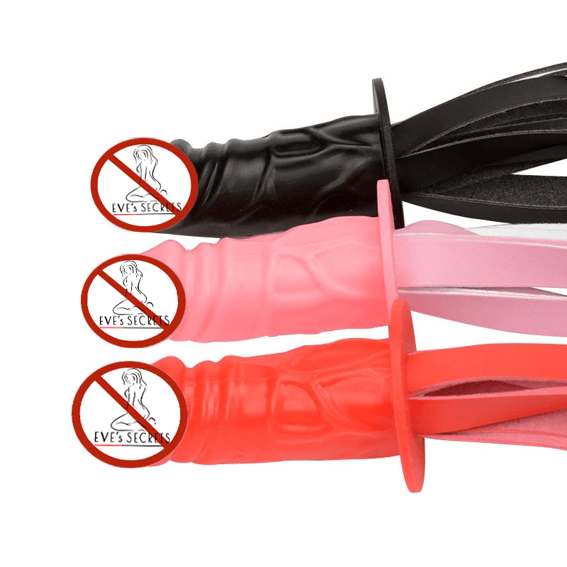 Simulation Silicone Dildo with PU Leather Whip / Vaginal Masturbator / Anal Massage Plug