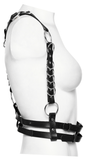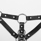 Punk Harness with Adjustable Fit and Metal Embellishments.