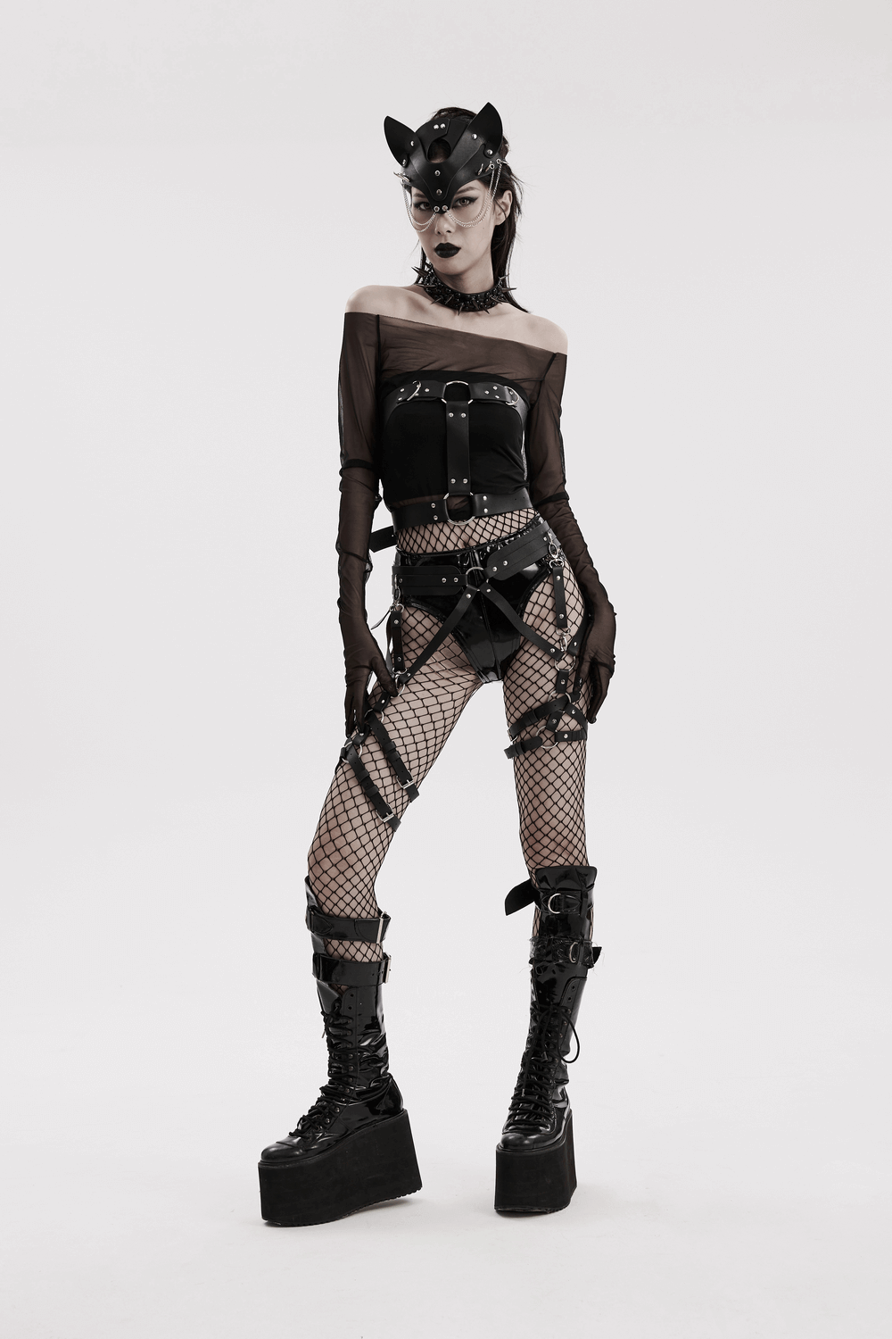 Gothic-inspired Strappy Faux Leather Harness for Women