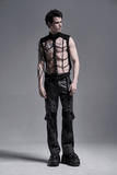 Tap into your inner punk rocker with this fierce black vest showcasing a standout chain-link pattern. Crafted from resilient elastic twill fabric, durability is assured. The gentle wire along the neckline and hem guarantees a snug fit, while the hollow-out design infuses a hint of rebelliousness. Whether worn solo or layered over a tee, it's a guaranteed head-turner. Aluminum chains provide a non-rusting, attention-grabbing accent. Ideal for those seeking to express their individual style.