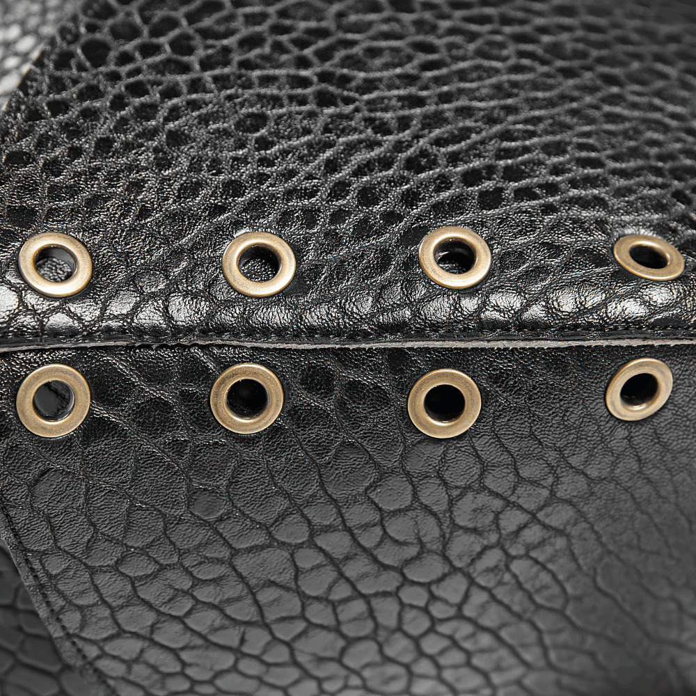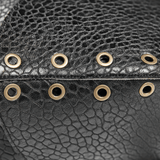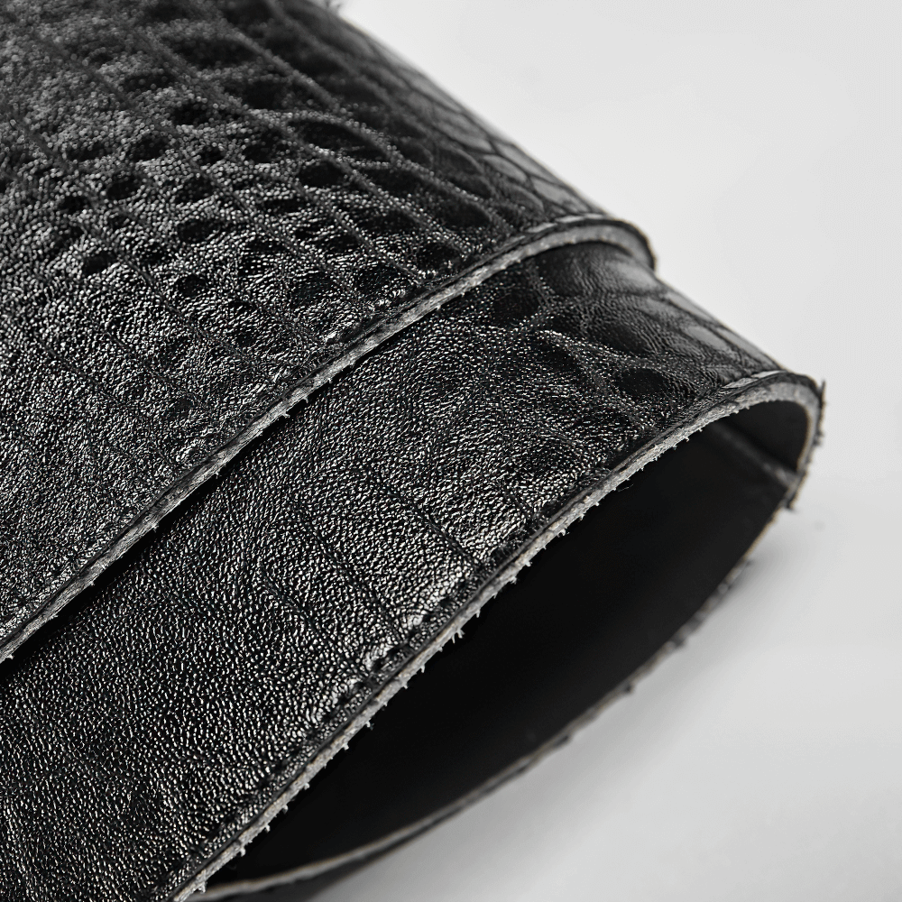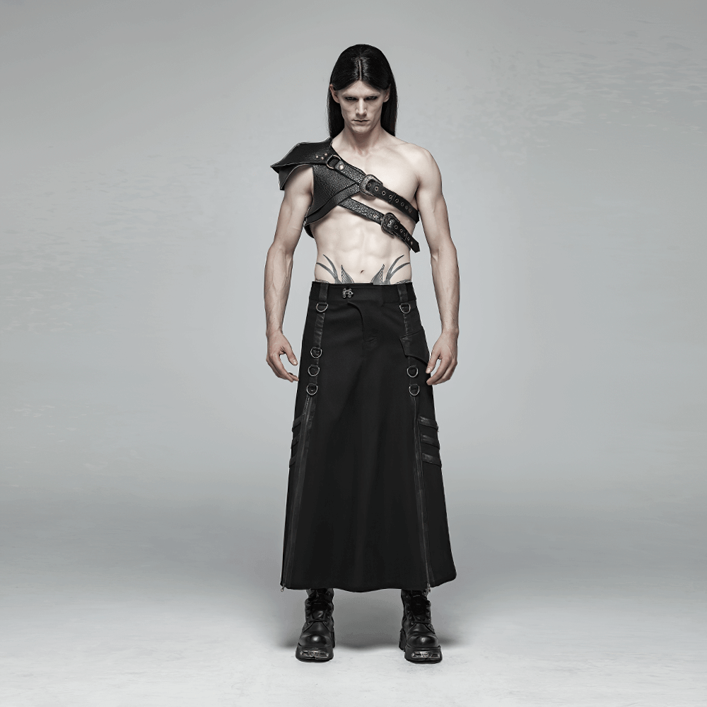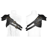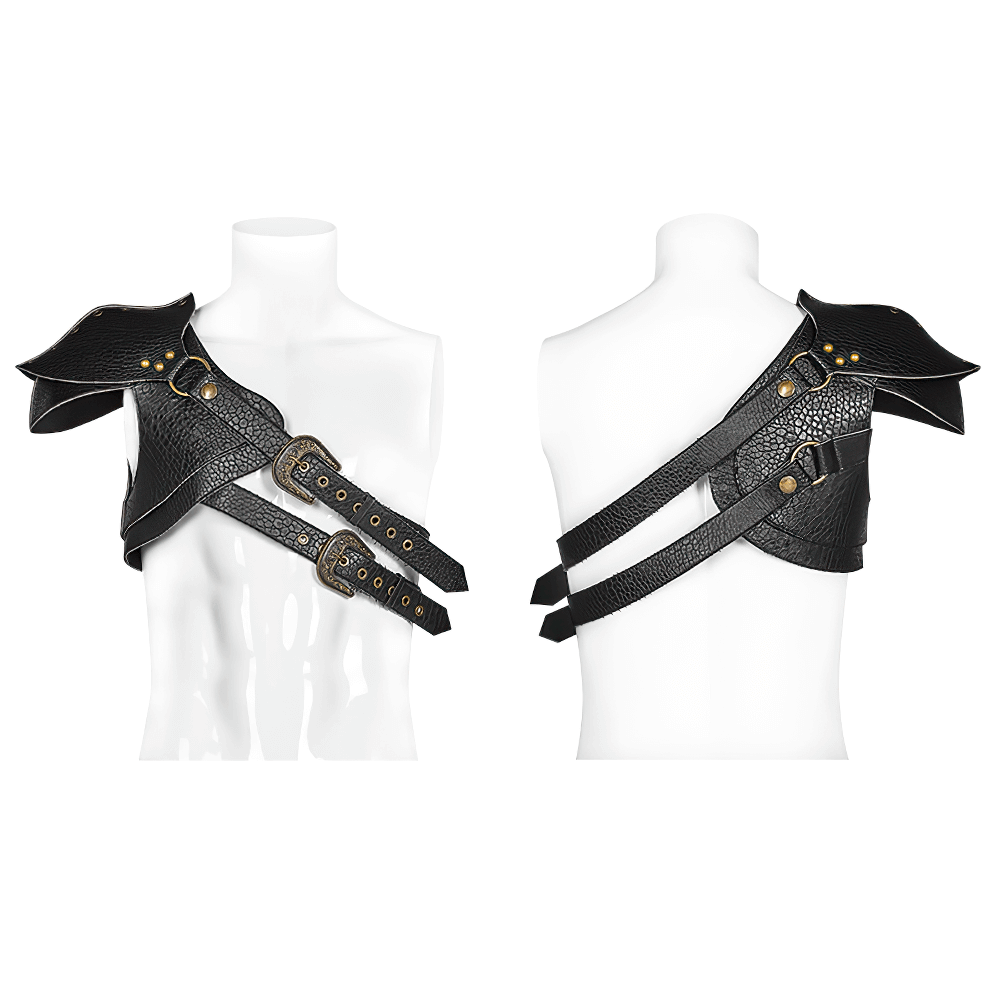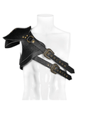 This gothic-style shoulder armor harness is made from textured PU leather for a fierce, statement-making look. Featuring two retro-style front buckles, the fit is fully adjustable for personalized wear. A structured shoulder plate adds depth and a steampunk vibe, making it ideal for cosplay, alt fashion, or standout festival outfits that command attention.