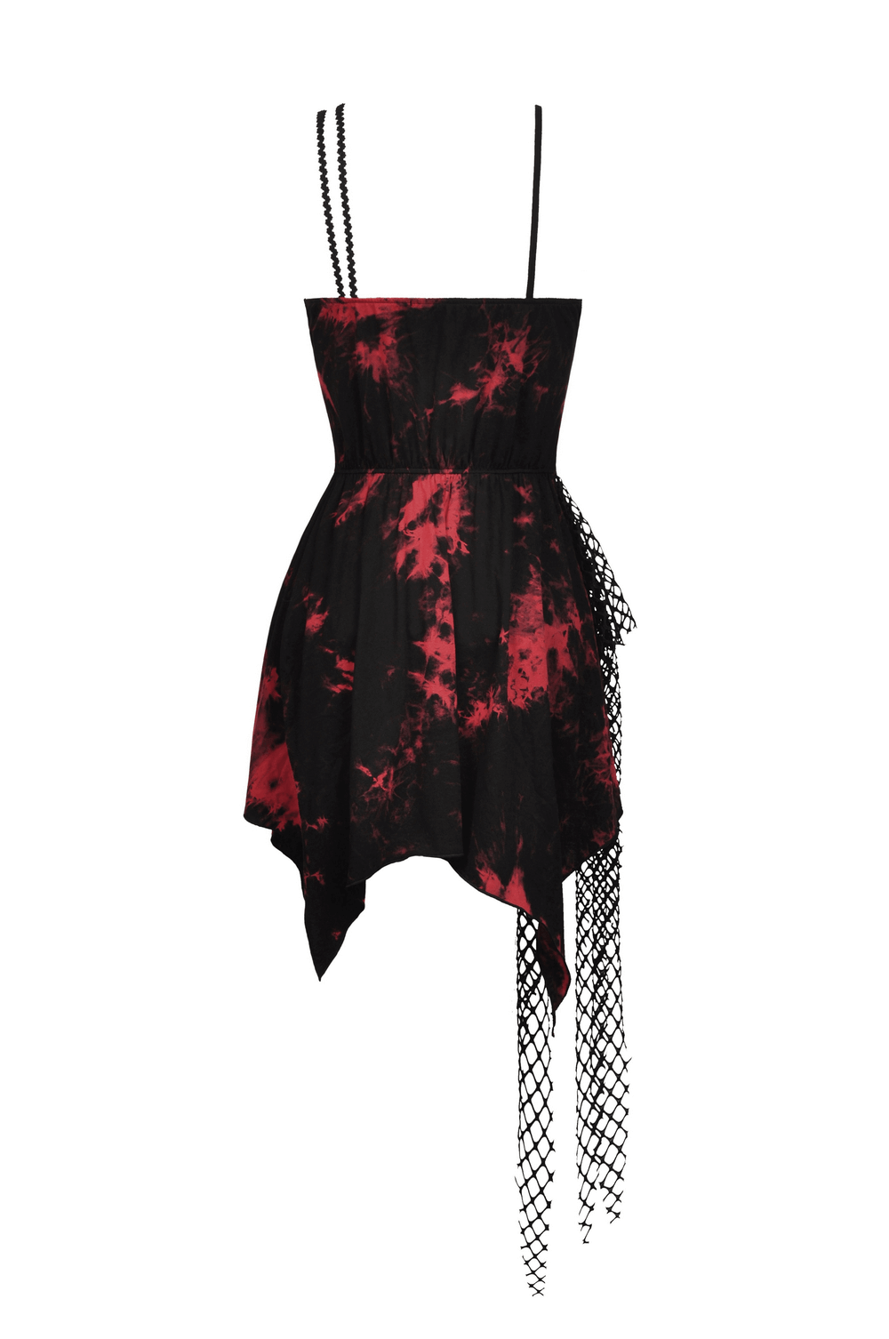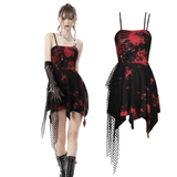 Asymmetrical Red and Black Strap Dress with Punk Rock Flair