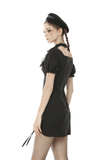 Immerse yourself in gothic sophistication with our black mini dress, embellished with intricate lace and ribbon accents. Vintage-inspired puff sleeves infuse charm, while the slim fit highlights your silhouette. Ideal for themed gatherings, everyday wear, or occasions that embrace dark, enigmatic style. Combine it with your preferred accessories to craft a distinctly individual look.