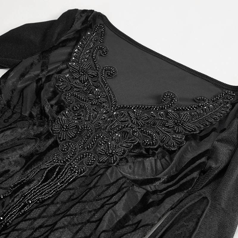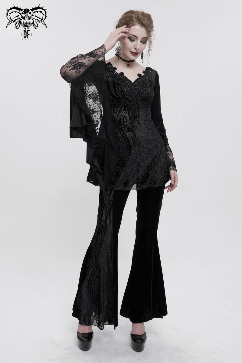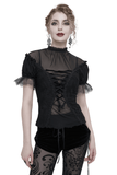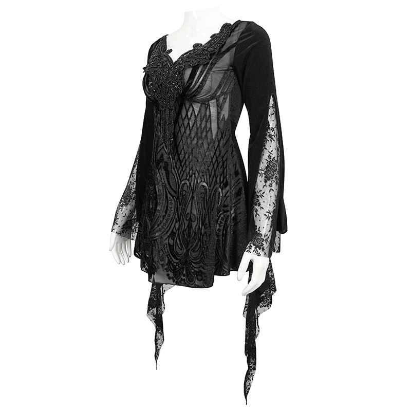 Introducing our popular women’s black top in gothic style. Crafted from premium lace, this long-sleeve top adds a touch of luxury to your outfit. Its chic design guarantees it won’t go unnoticed. Perfect for elevating your wardrobe, this top makes an excellent choice for your next purchase at our store.
