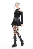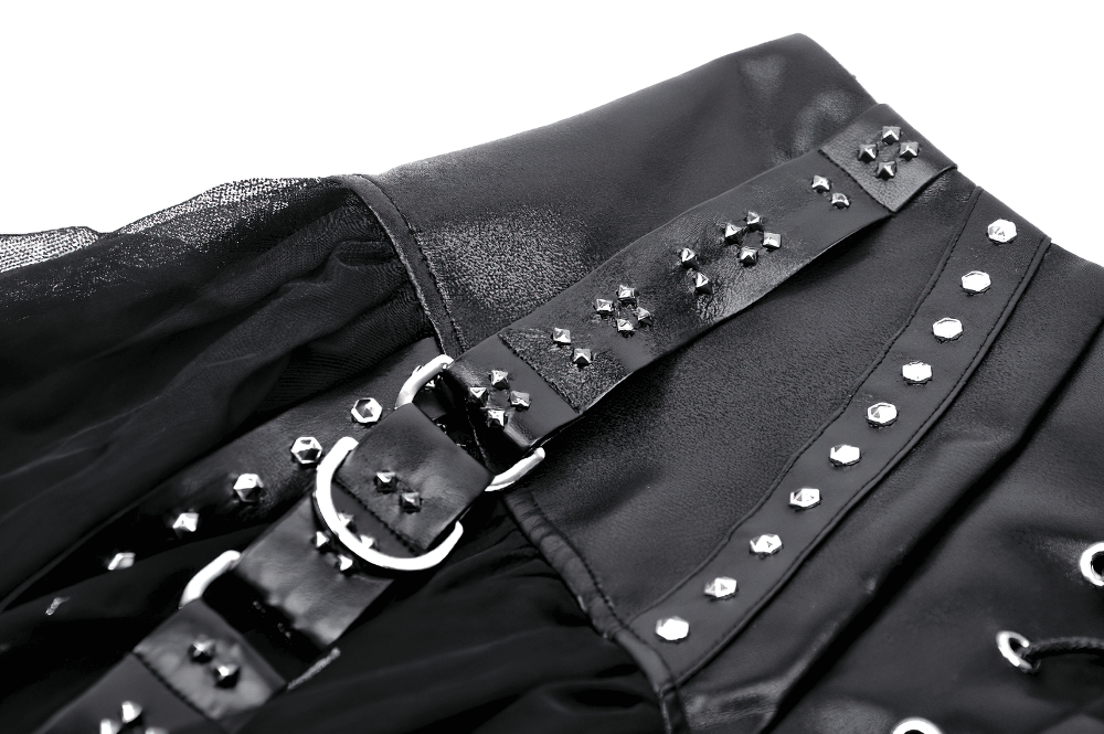 Black Tulle Skirt with Front Lace-Up and Rivets