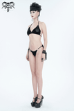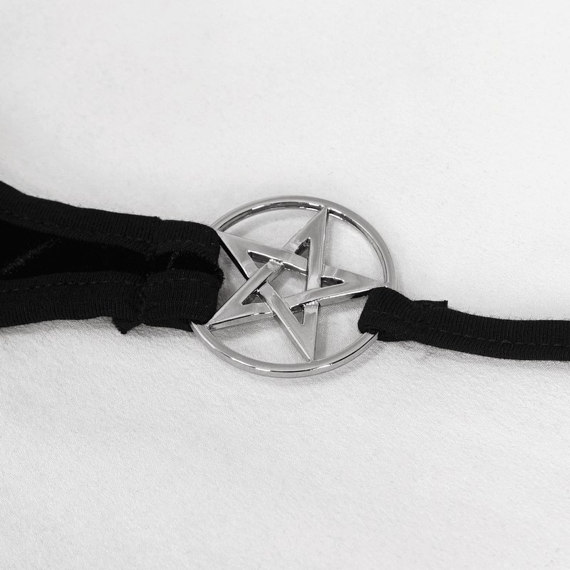 Explore the alluring essence of summer with our enticing black velvet pentagram bikini, offering a unique twist on swimwear. This women's alternative beach attire seamlessly blends gothic flair with coastal chic, showcasing captivating pentagram motifs on luxurious velvet fabric. Crafted with stretchy material, it guarantees a flattering silhouette, empowering you to exude confidence and allure as you stroll along the shore.