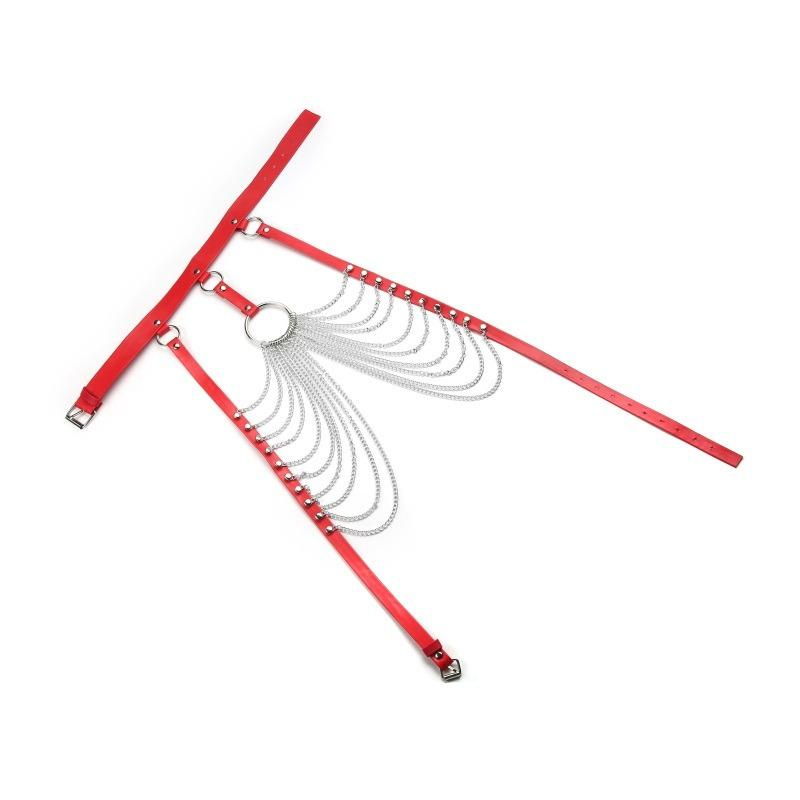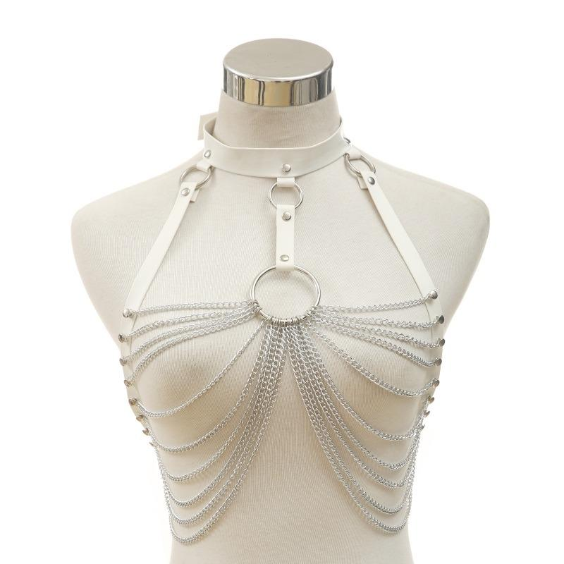 Women harness belts on the chest with chains