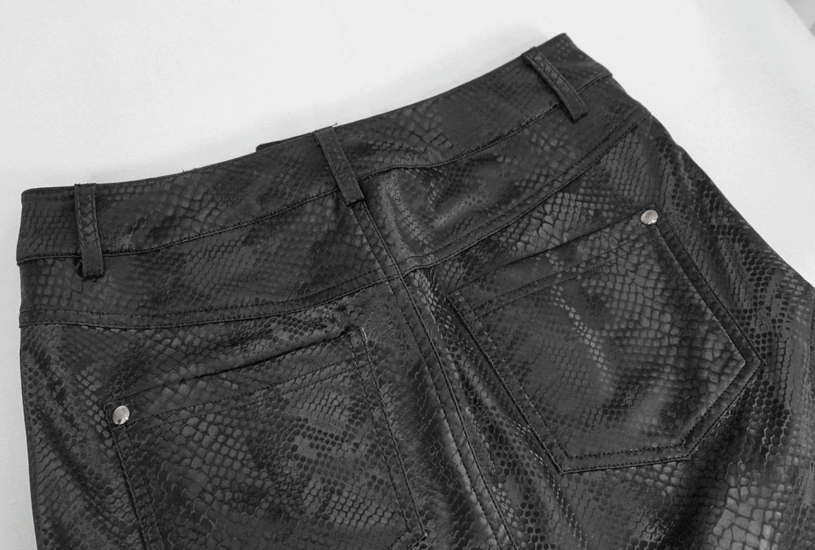 Check out our trendy women's punk-style skirt. This mini skirt is fierce in faux leather, with a high waist that cinches your curves for a flattering silhouette. The bold snake print turns heads, making a statement that's both edgy and undeniably you. Don't miss out – add this skirt to your wardrobe and unleash your inner rockstar! Team it with a chained belt and ripped fishnets for ultimate punk vibes, or dress it down with a graphic tee for a rebellious everyday look. This versatile piece is ready to become your new go-to for edgy style.