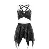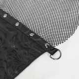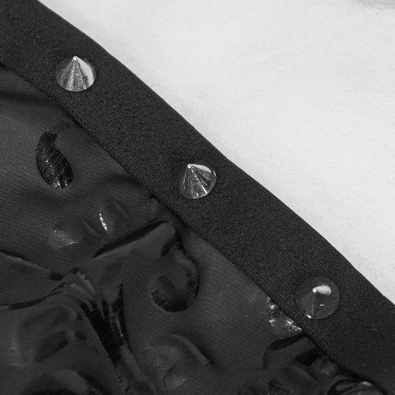 Immerse yourself in gothic allure with our floral print irregular splice swimsuit. This alluring attire breaks the mold of traditional swimwear, boasting a daring gothic print and captivating irregular splice design. Enhanced with studs and star-shaped straps for added flair, this swimsuit is ideal for women unafraid to embrace their darker essence. Bask in the sun with a distinctive alternative look.