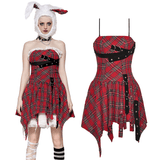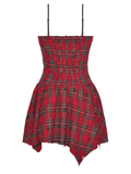 Make a statement in this plaid corset dress with a punk-inspired vibe. Edgy straps, studded accents, and an asymmetrical hemline add bold flair. The smocked back offers a snug fit, while the plaid fabric gives your wardrobe a rebellious edge. Ideal for parties, concerts, or events to showcase your distinctive style.