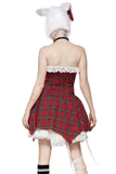 Corset Dress with Plaid Pattern and Punk-Style Strap Accents