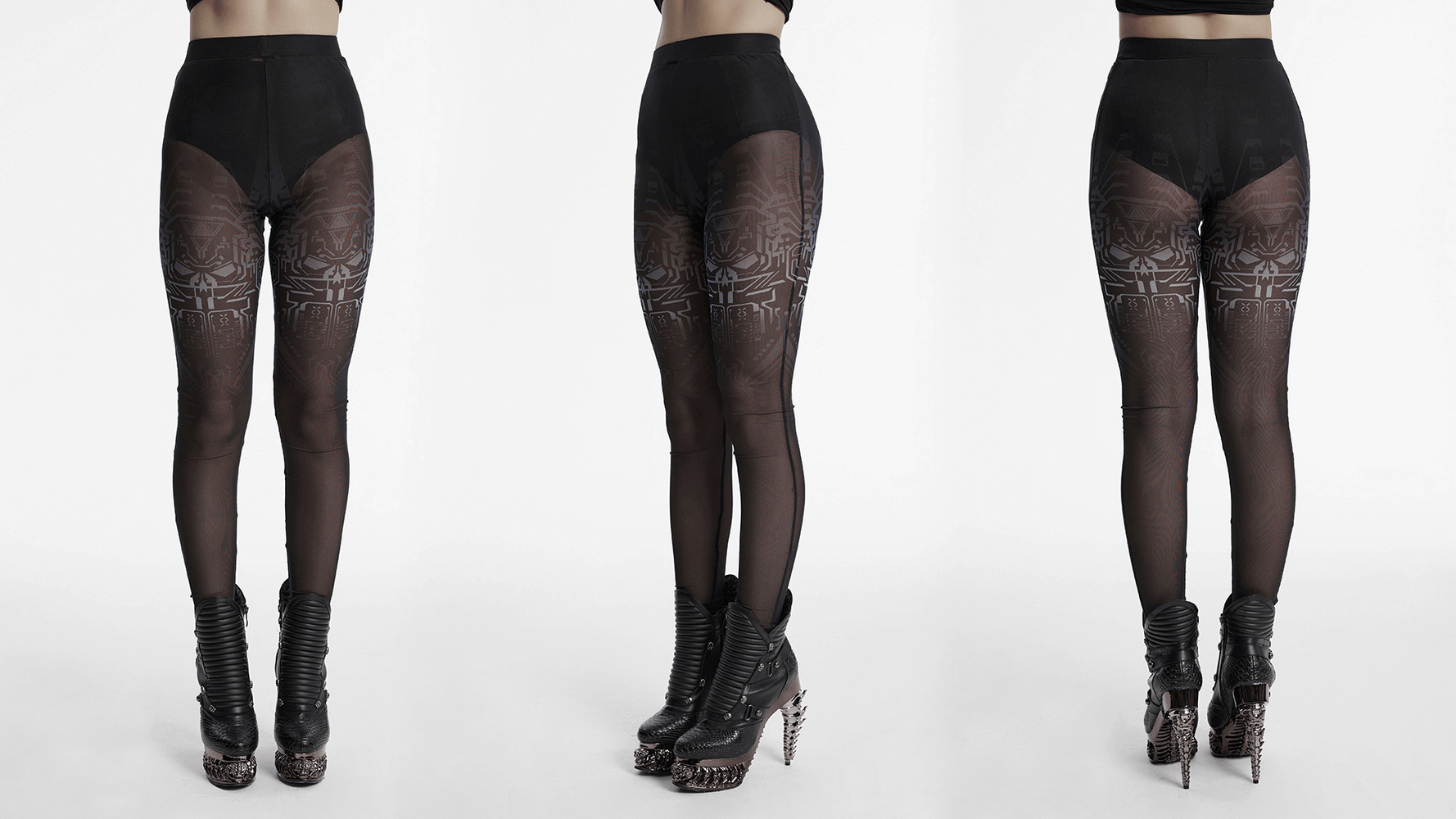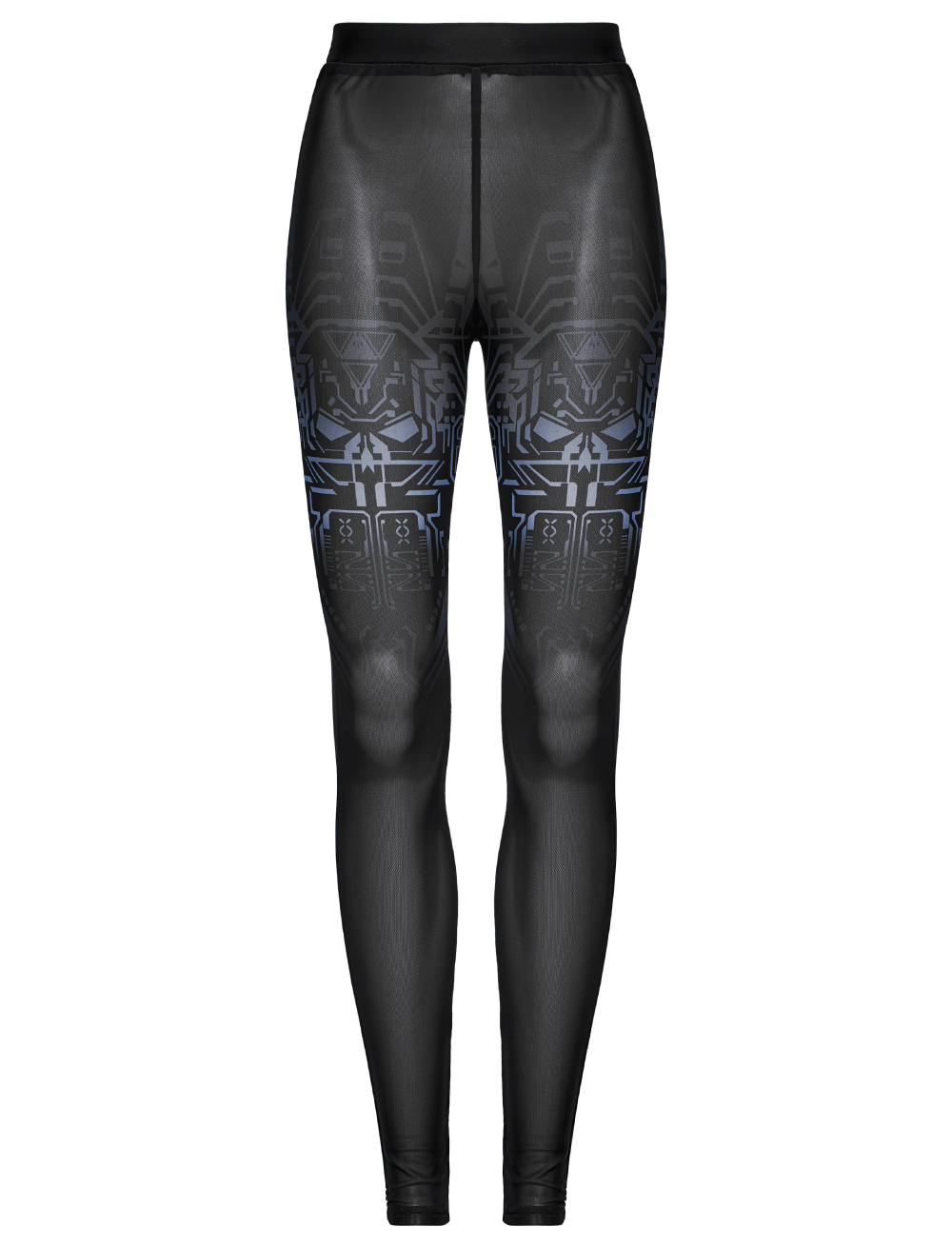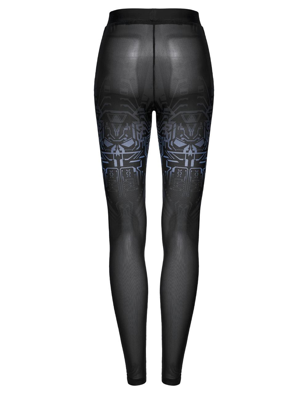 Upgrade your style with these Cyberpunk Skull Mesh Leggings, made from soft, elastic printed mesh and flexible knitted fabric. Featuring a sleek, slim fit, they highlight a futuristic mechanical skull design enhanced by gradient printing. Ideal for achieving a bold cyberpunk aesthetic, these leggings blend edgy fashion with modern innovation for a statement-making look.