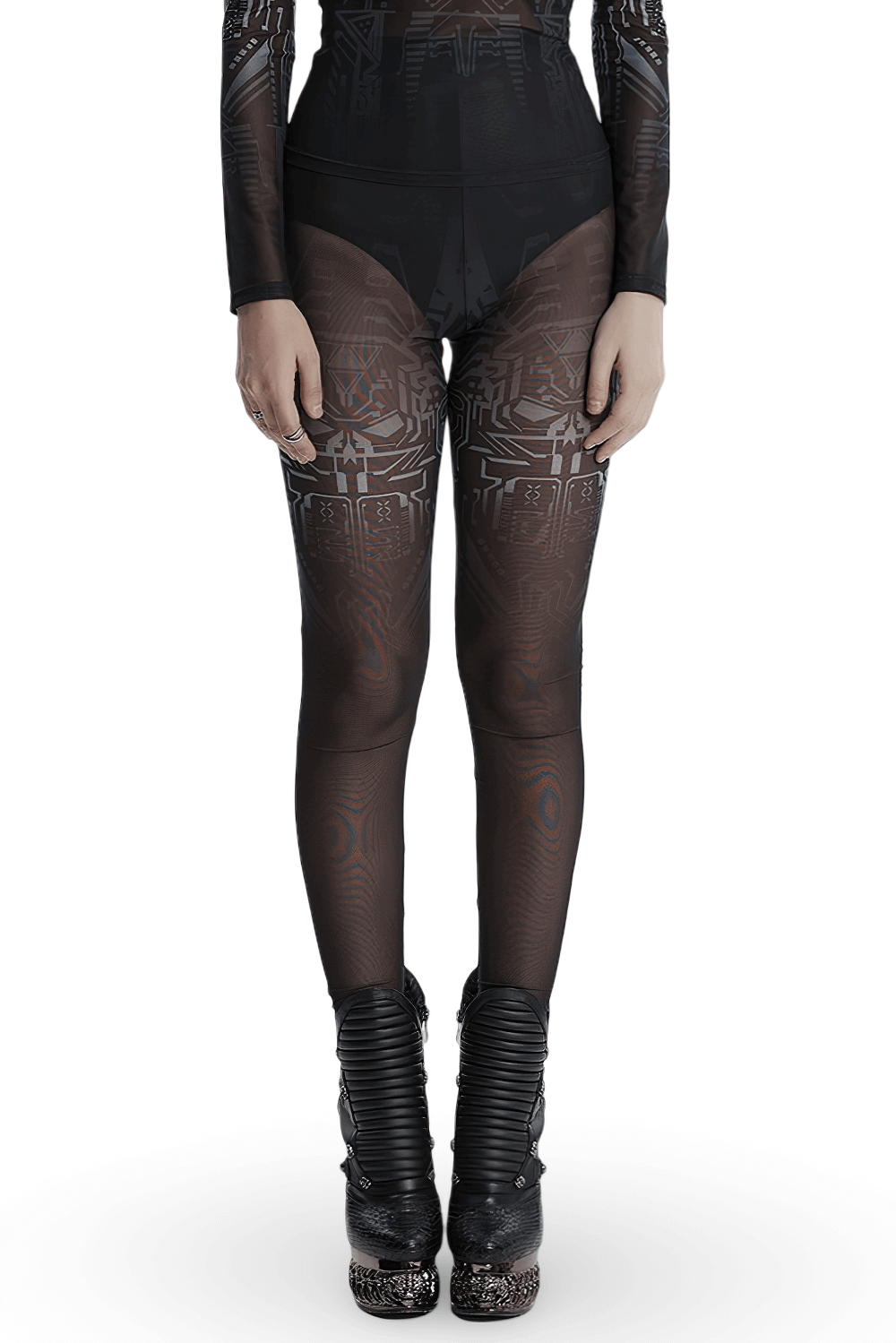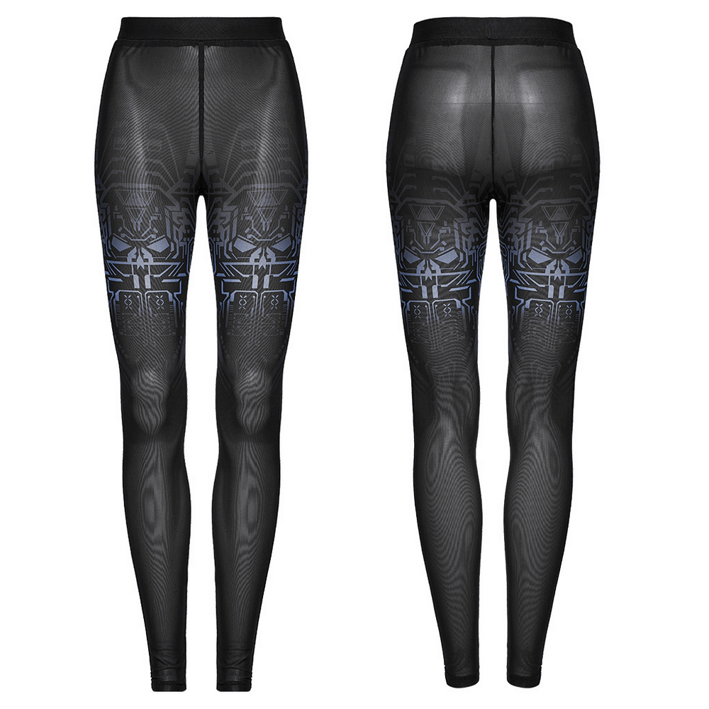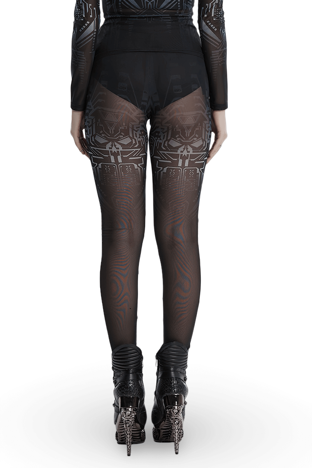 Upgrade your style with these Cyberpunk Skull Mesh Leggings, made from soft, elastic printed mesh and flexible knitted fabric. Featuring a sleek, slim fit, they highlight a futuristic mechanical skull design enhanced by gradient printing. Ideal for achieving a bold cyberpunk aesthetic, these leggings blend edgy fashion with modern innovation for a statement-making look.