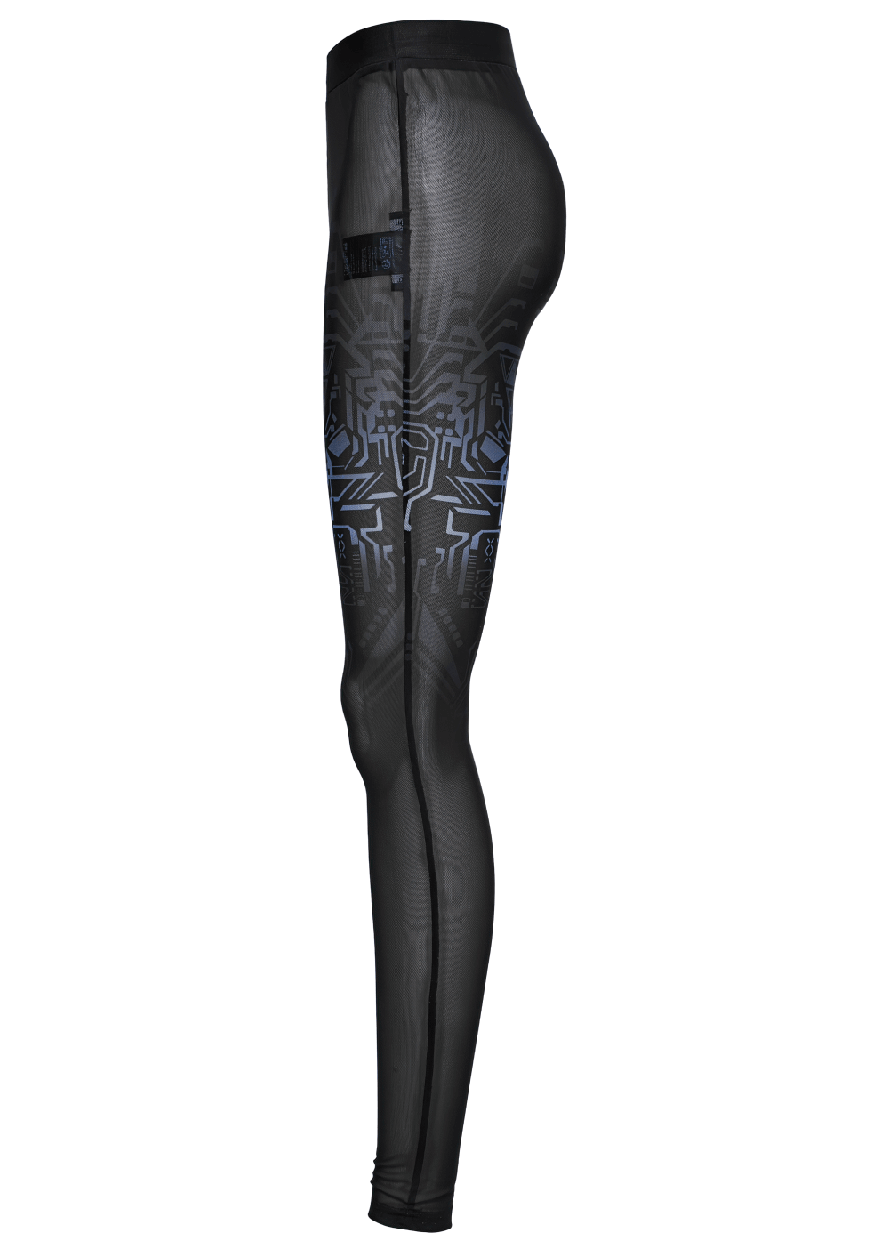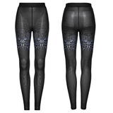 Cyberpunk Gradient Print Leggings with Skull Mesh Detailing