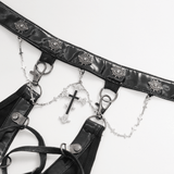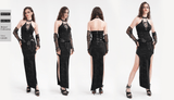 Channel your dark side with this Gothic Black Halter Dress. Adorned with detailed chains, buckles, and a pentagram accent, it’s perfect for alternative fashion lovers. The high slit and lace-up front offer edgy elegance, making it ideal for concerts, festivals, or a night out. Crafted from durable materials, this dress guarantees a bold and lasting impression.
