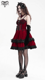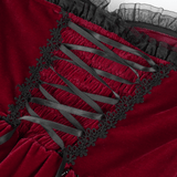 Immerse yourself in the elegance of our Burgundy Velvet Gothic Lolita Dress. Featuring a vivid red velvet bodice enhanced with delicate black lace trim and ornate chain accents, this piece exudes a harmonious mix of Victorian grace and gothic sophistication. The knee-length skirt, adorned with floral black details, offers a captivating touch perfect for themed events and memorable occasions.