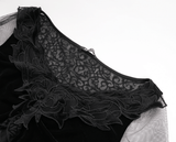 Gothic Dark Fantasy Top with Mesh Sleeves and Floral Applique.