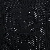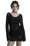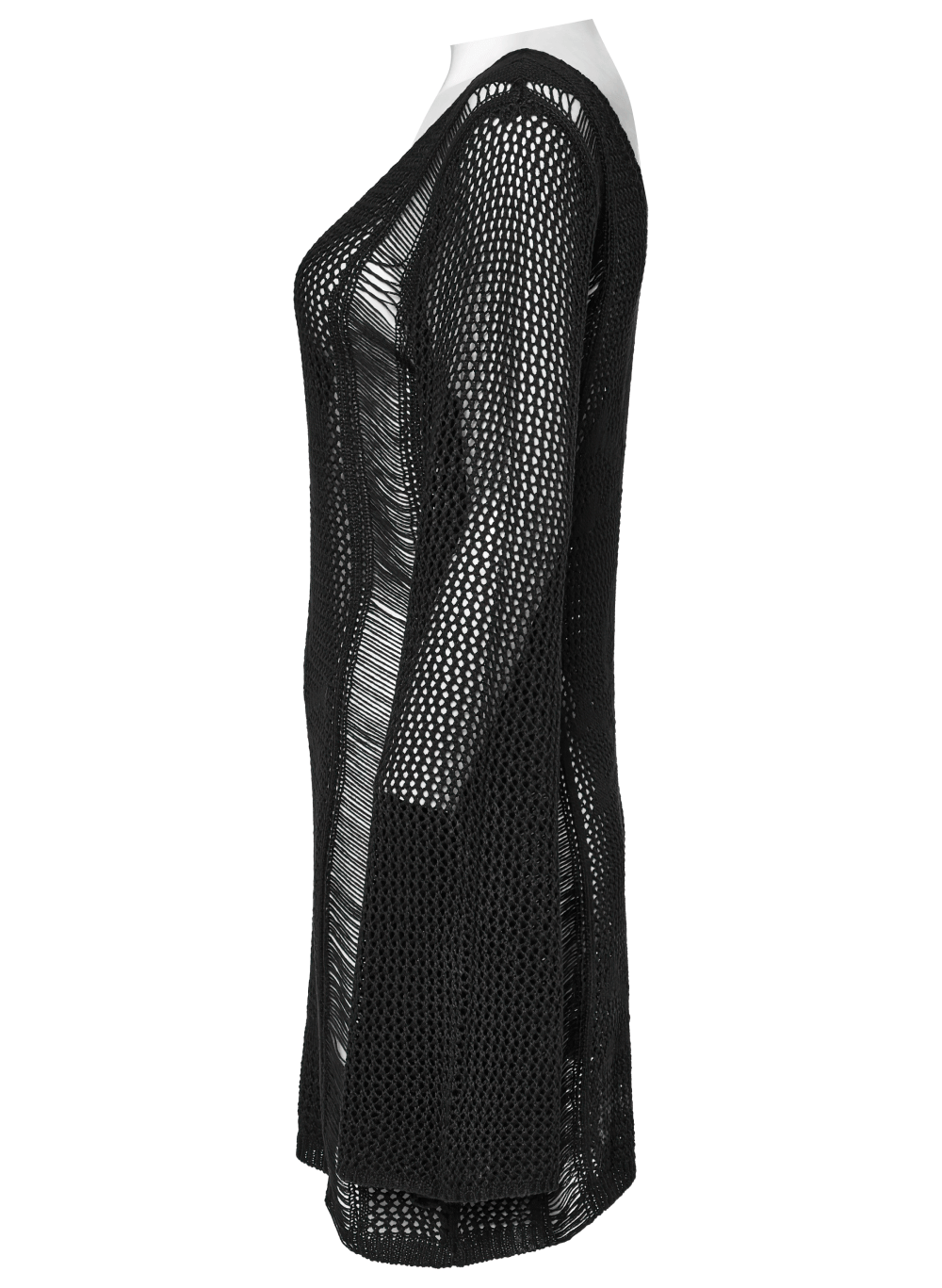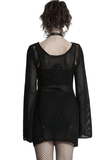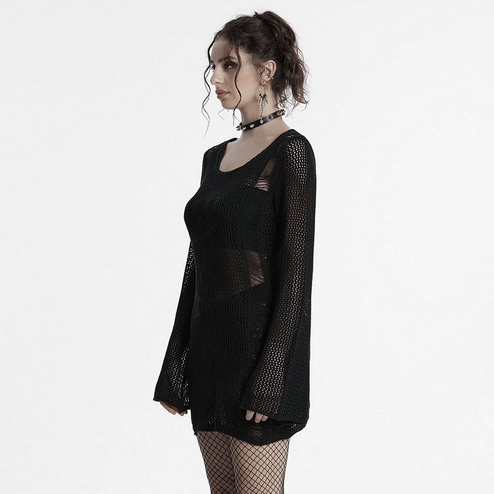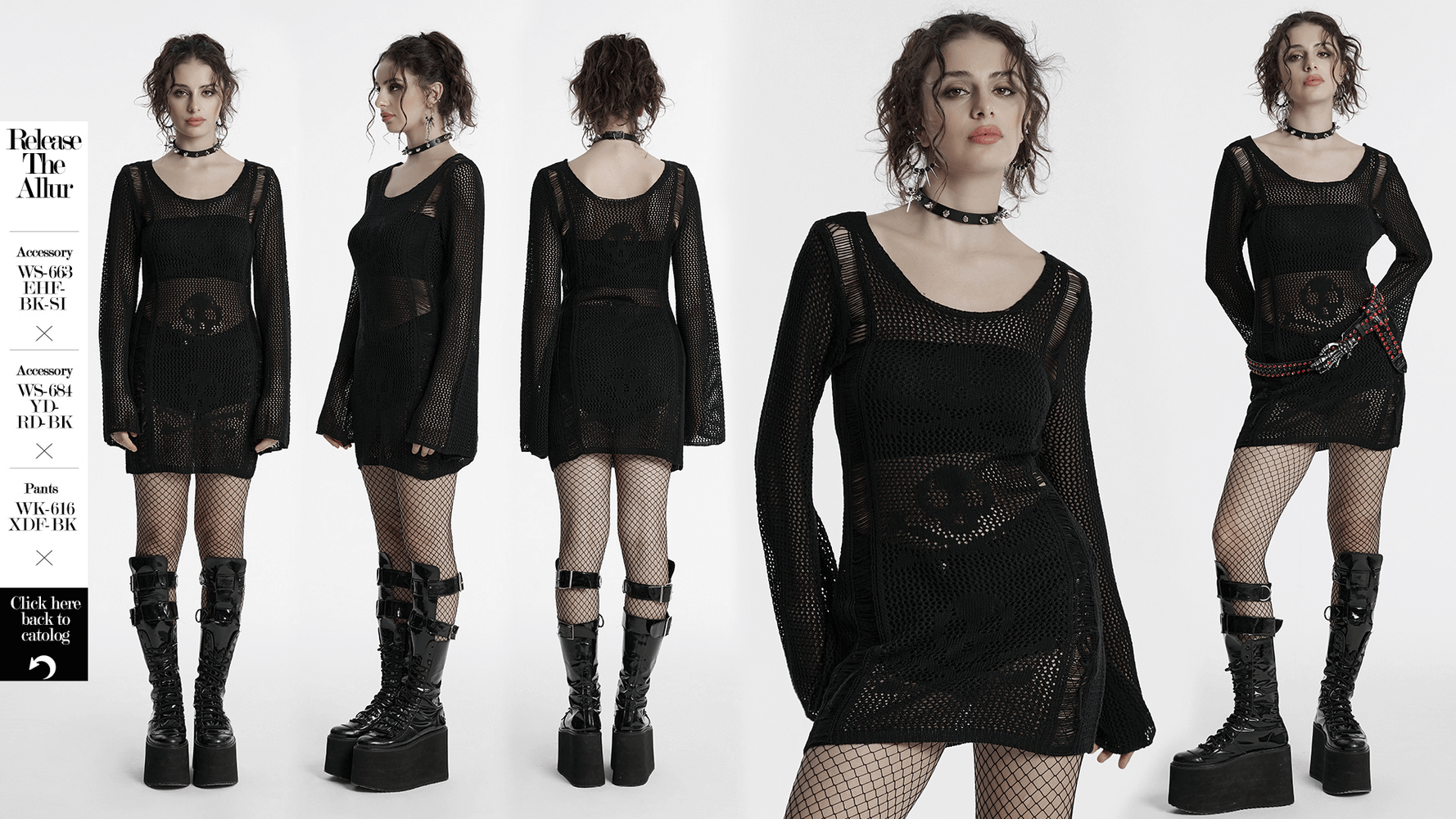 Gothic Black Skull Knit Mesh Dress with Sheer Long Sleeves