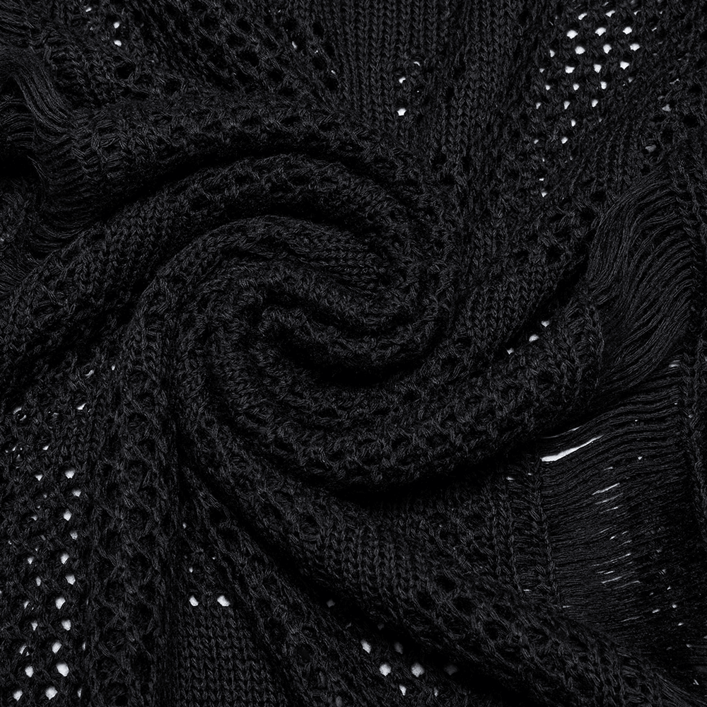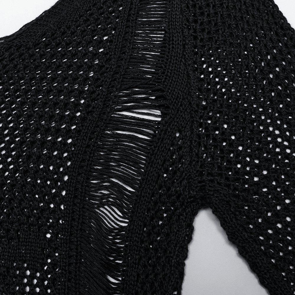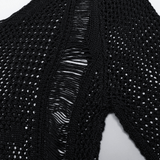 This Gothic Black Punk Skull Knit Mesh Long Sleeve Dress is made from soft yarn and showcases a bold skull motif woven into its unique knit structure. Sheer mesh fabric and intricate drawnwork from shoulder to hem deliver a seductive punk edge. Perfect for streetwear rebels and alternative fashion lovers looking to make a bold, fearless style statement.
