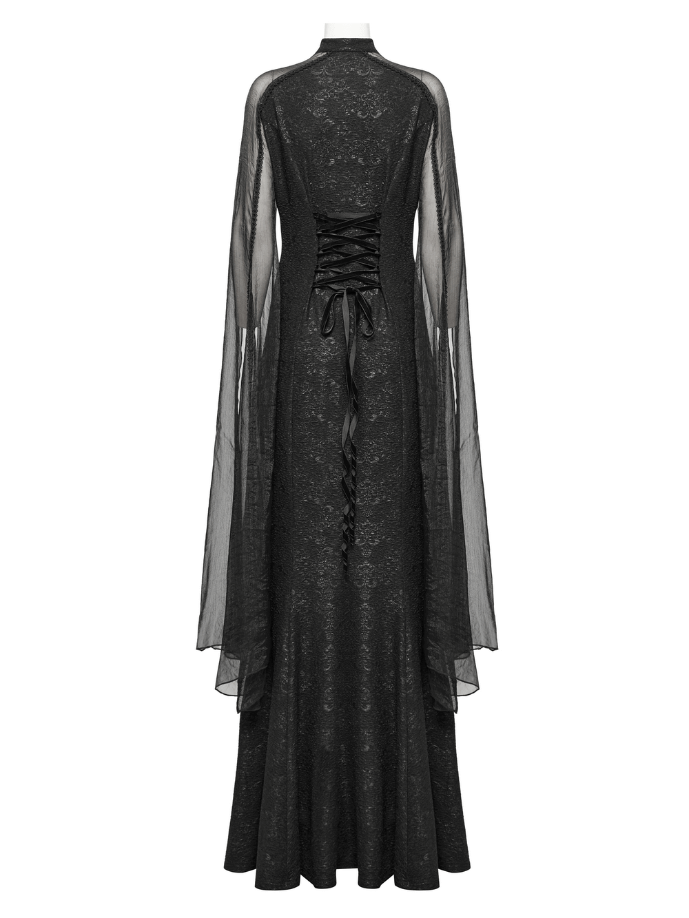 Gothic Chiffon Gown with Fishtail Hem and Lace-Up Back