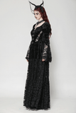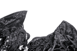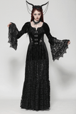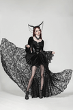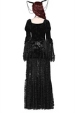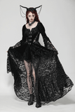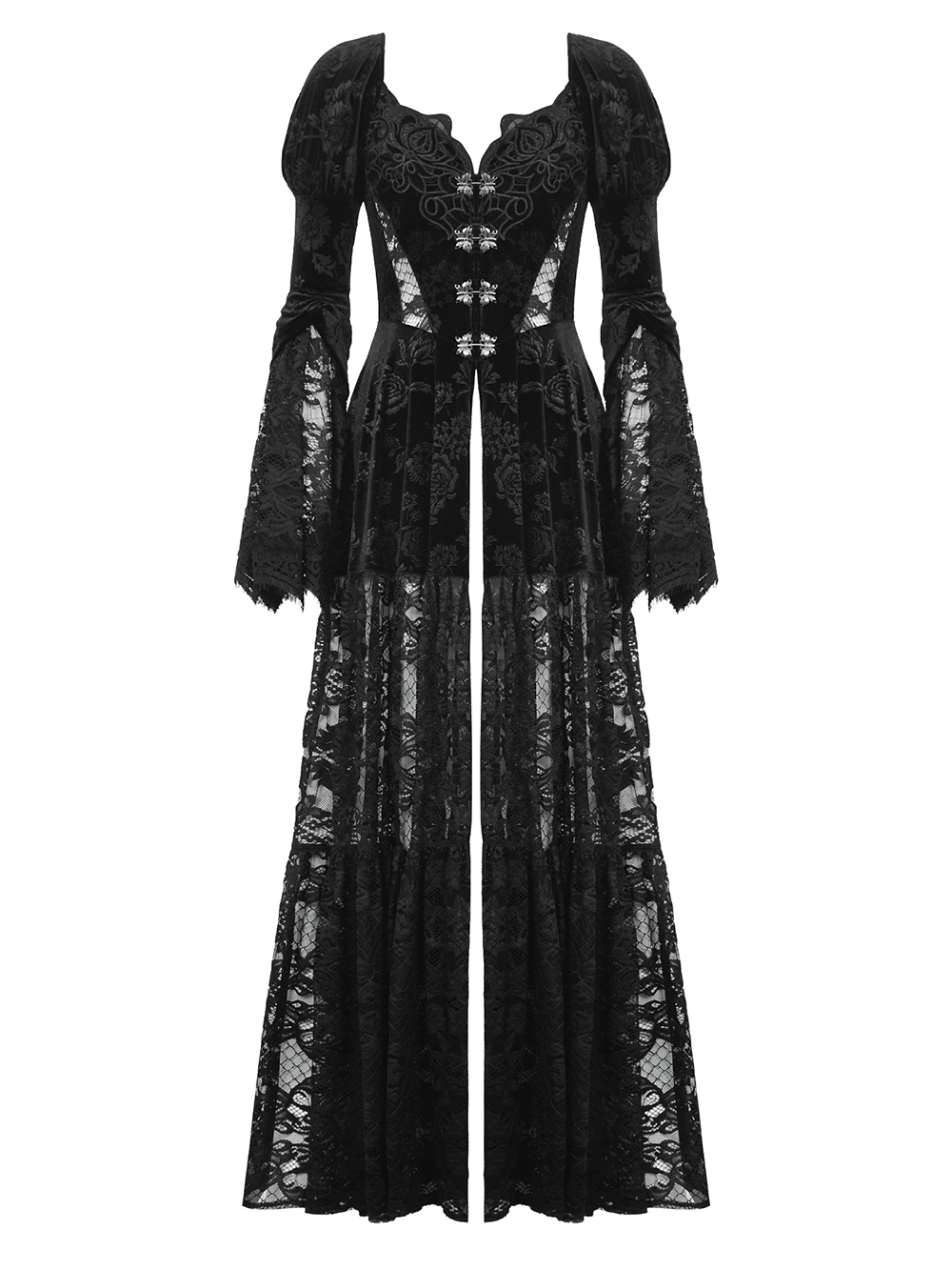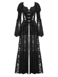 This elegant black lace evening cape showcases a Victorian-inspired design, making it a breathtaking option for any formal gathering. Featuring delicate floral lace patterns and subtle gemstone accents, it creates a mesmerizing silhouette with its flowing skirt and graceful long sleeves. Ideal for galas, weddings, and refined soirées, it guarantees a show-stopping entrance.