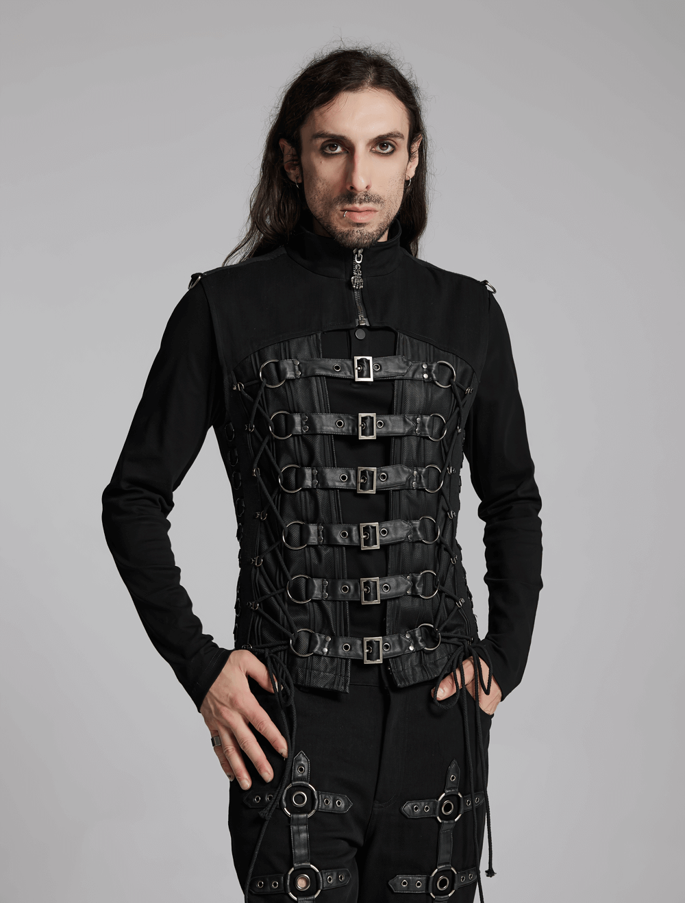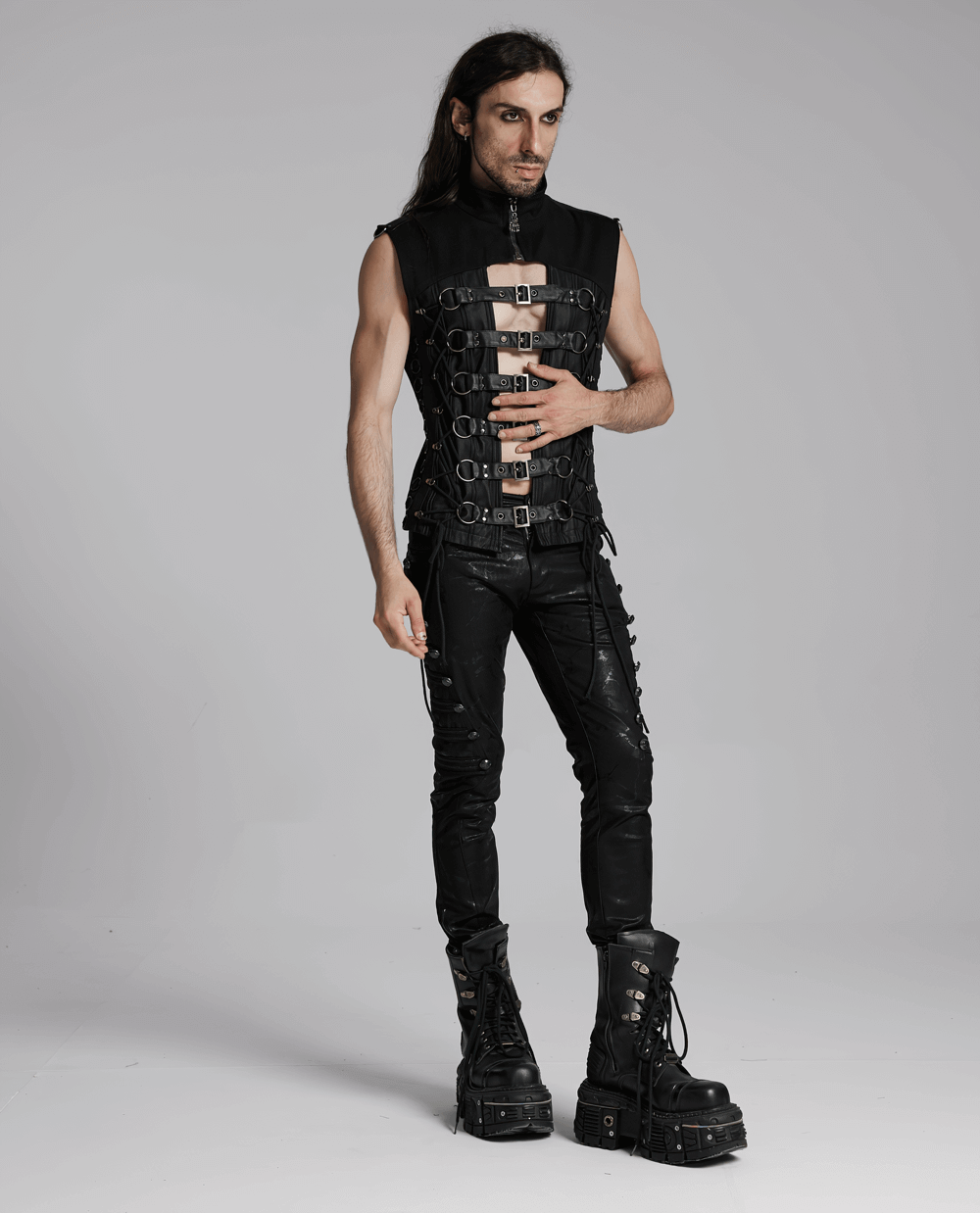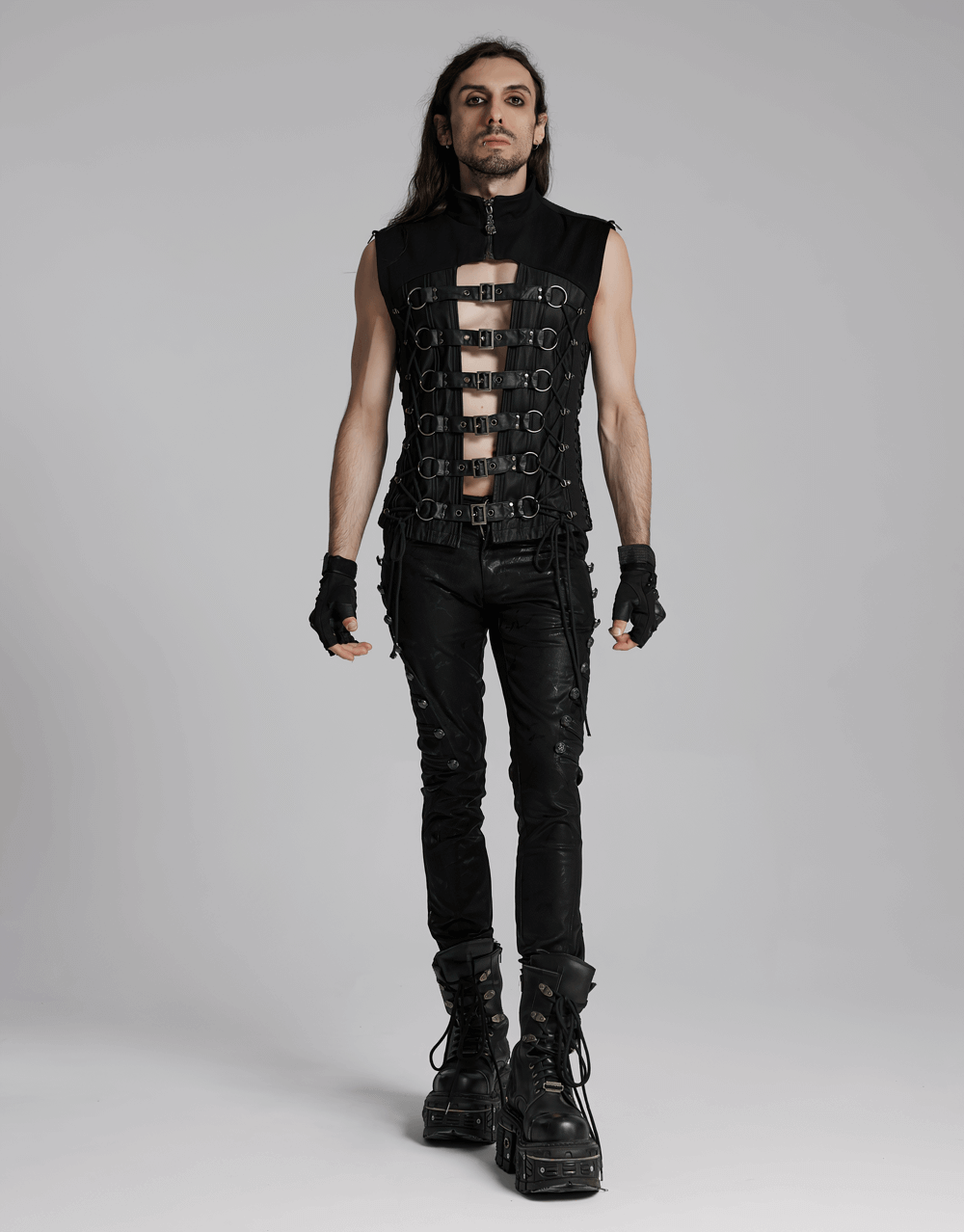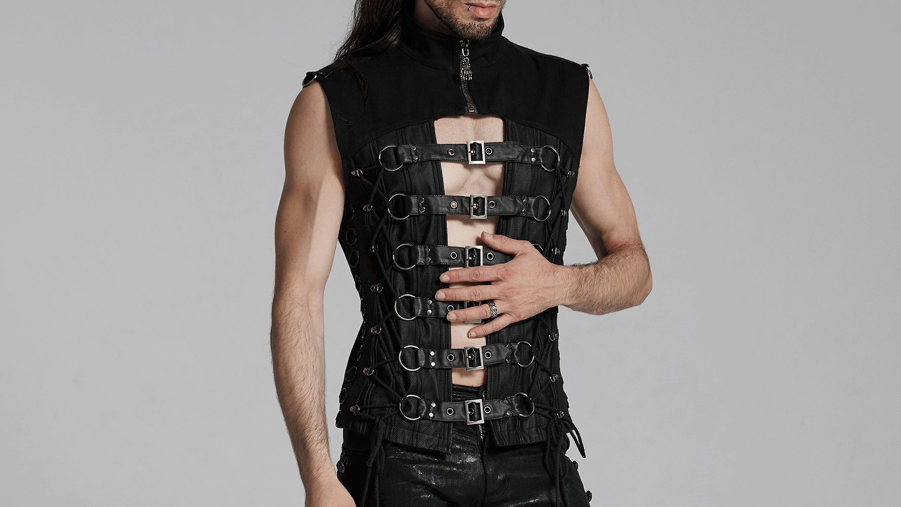 Bold Punk Power Vest with Straps and Metallic Accents.