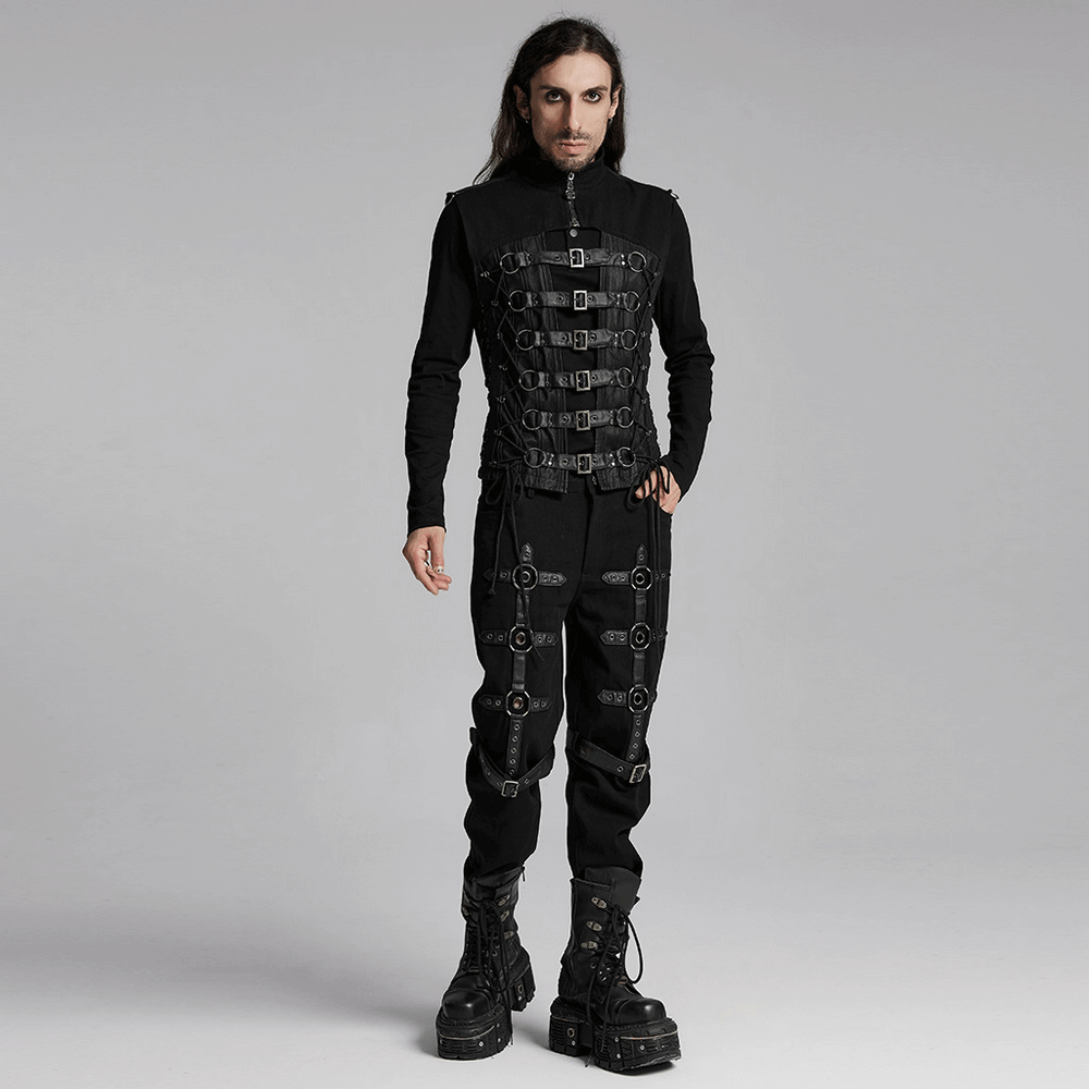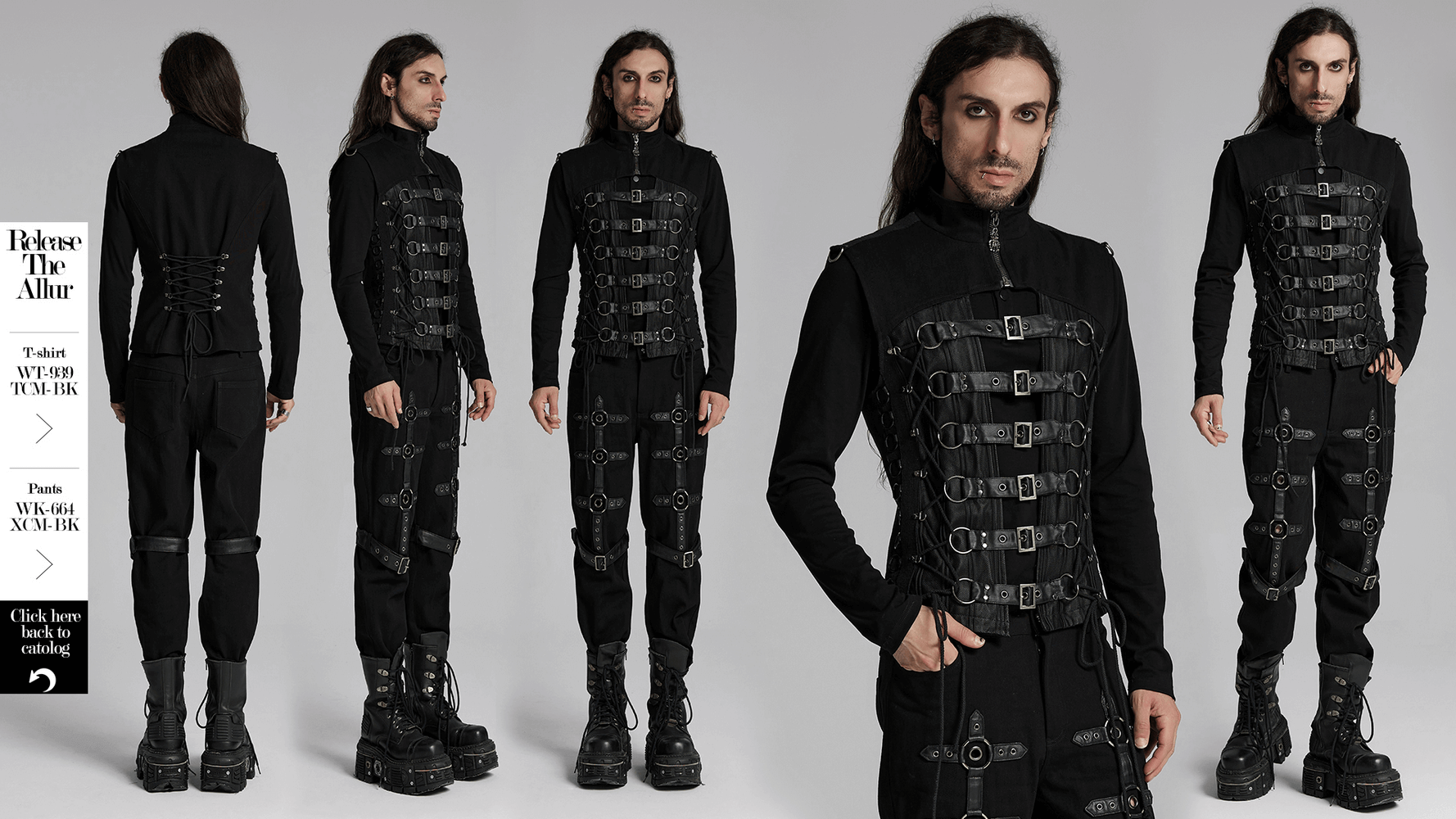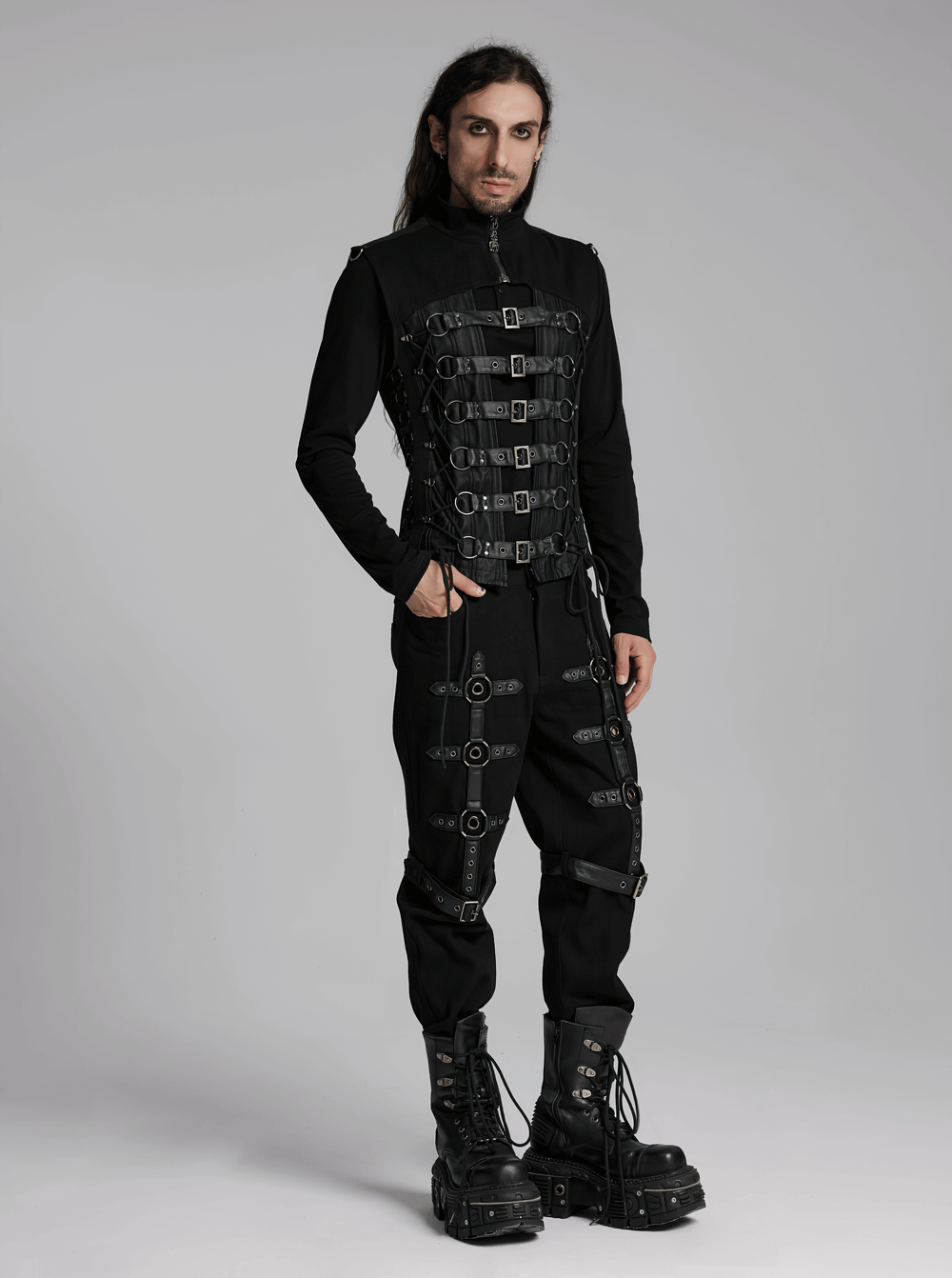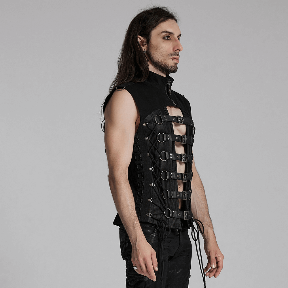 Bold Punk Power Vest with Straps and Metallic Accents.