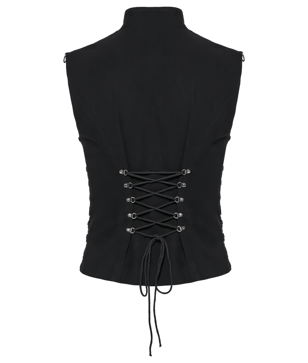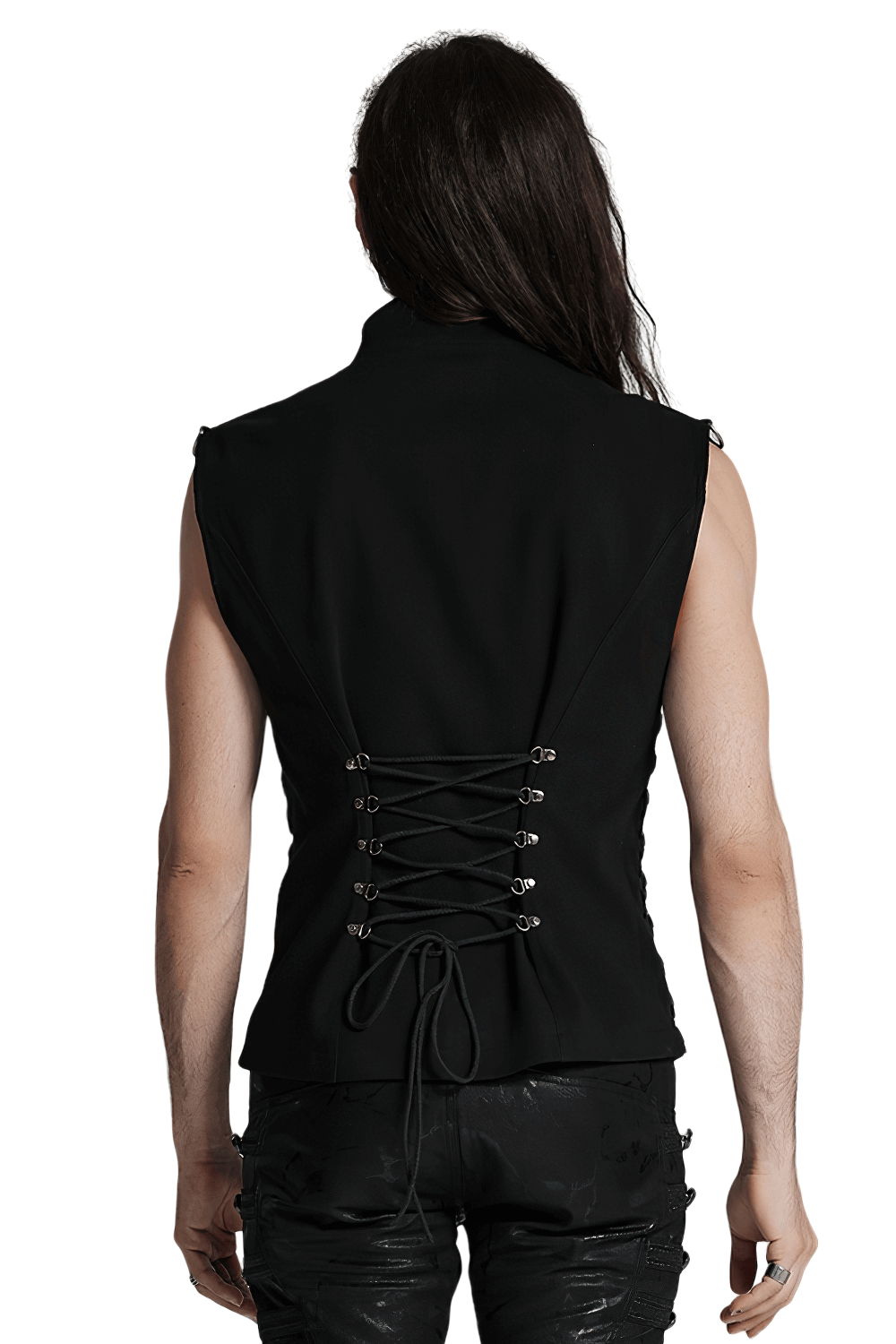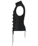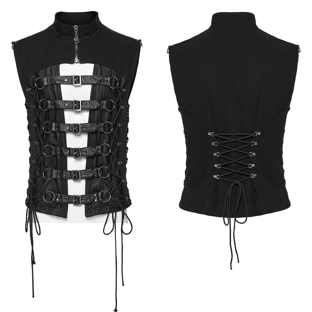 Gothic Lace-Up Back Vest with Bold Buckle Strap Detail