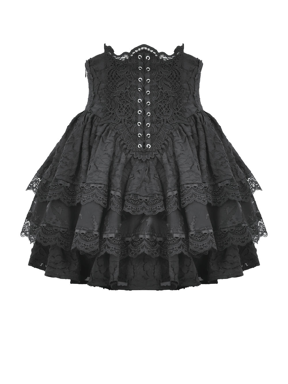Black Tiered Skirt with Victorian-Inspired Lace.