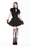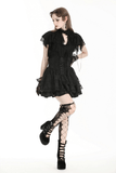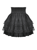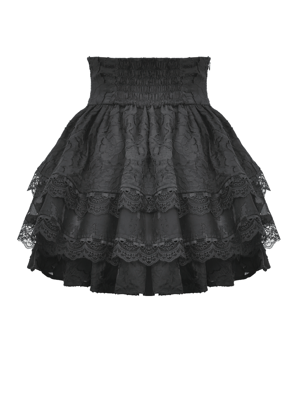 Gothic Layered Skirt with Lace Trim and Buckle Accent
