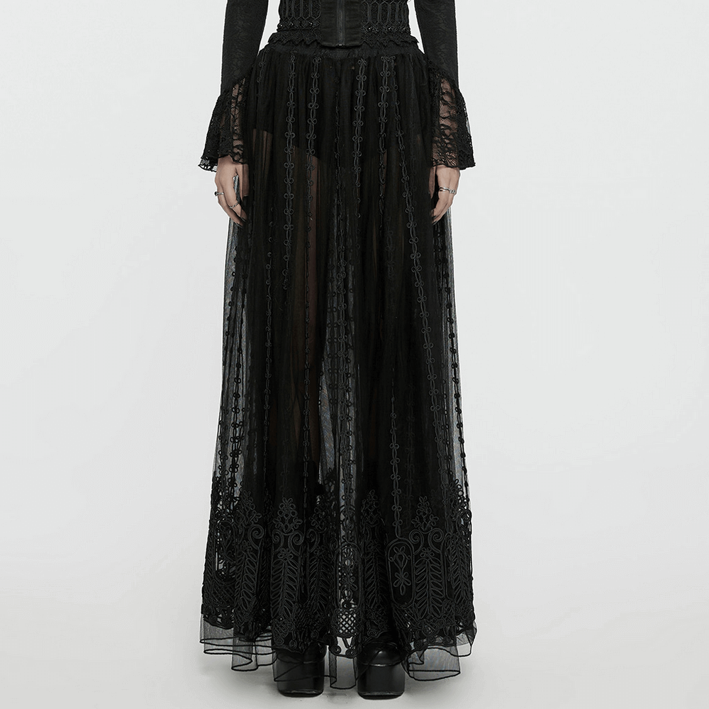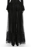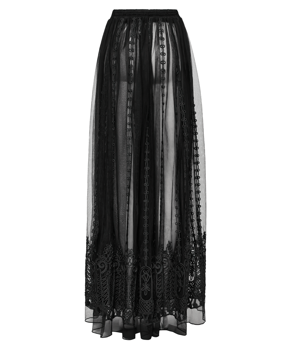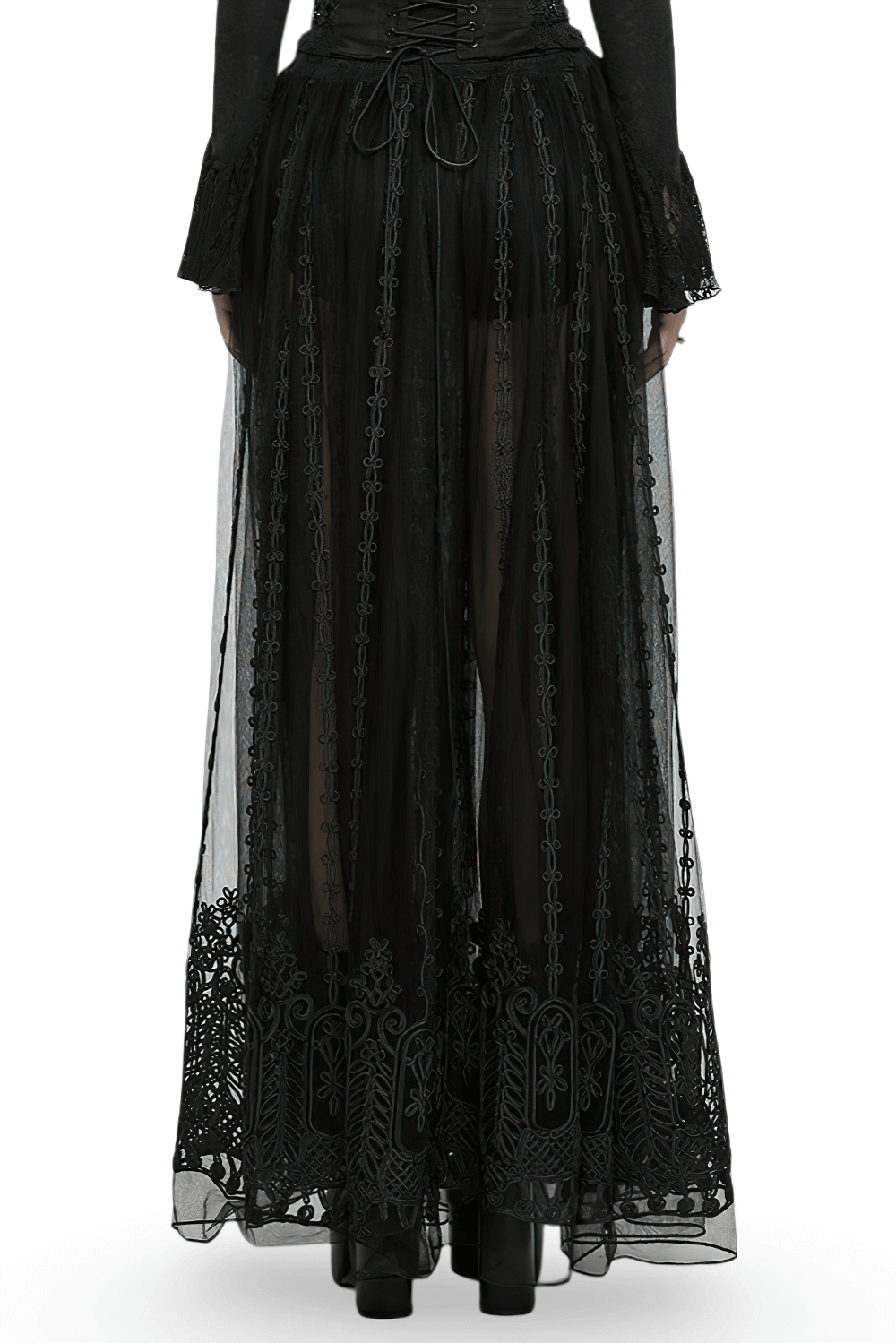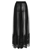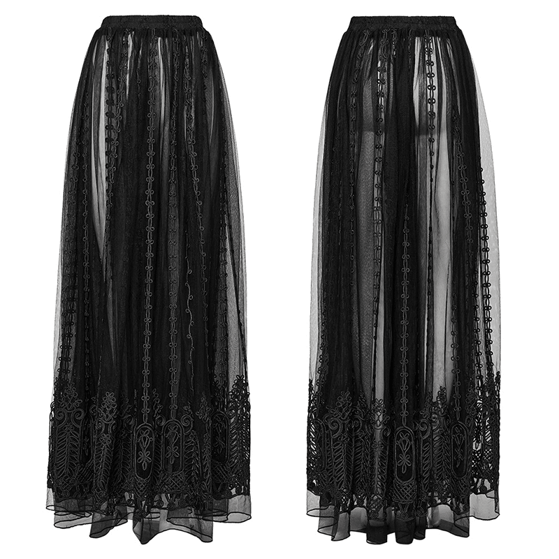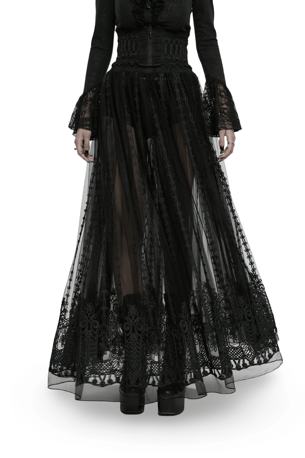 3D Embroidered Goth Skirt - Gothic Maxi Skirt with Sheer Mesh.