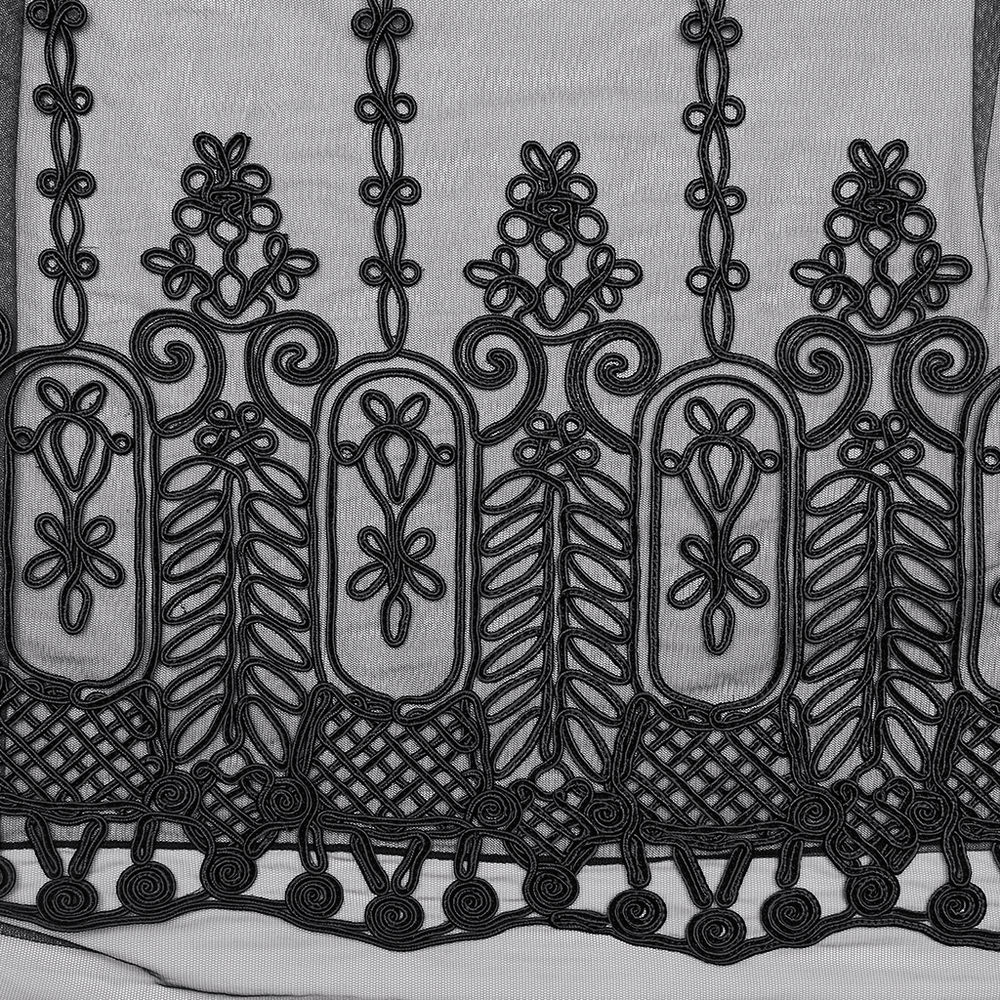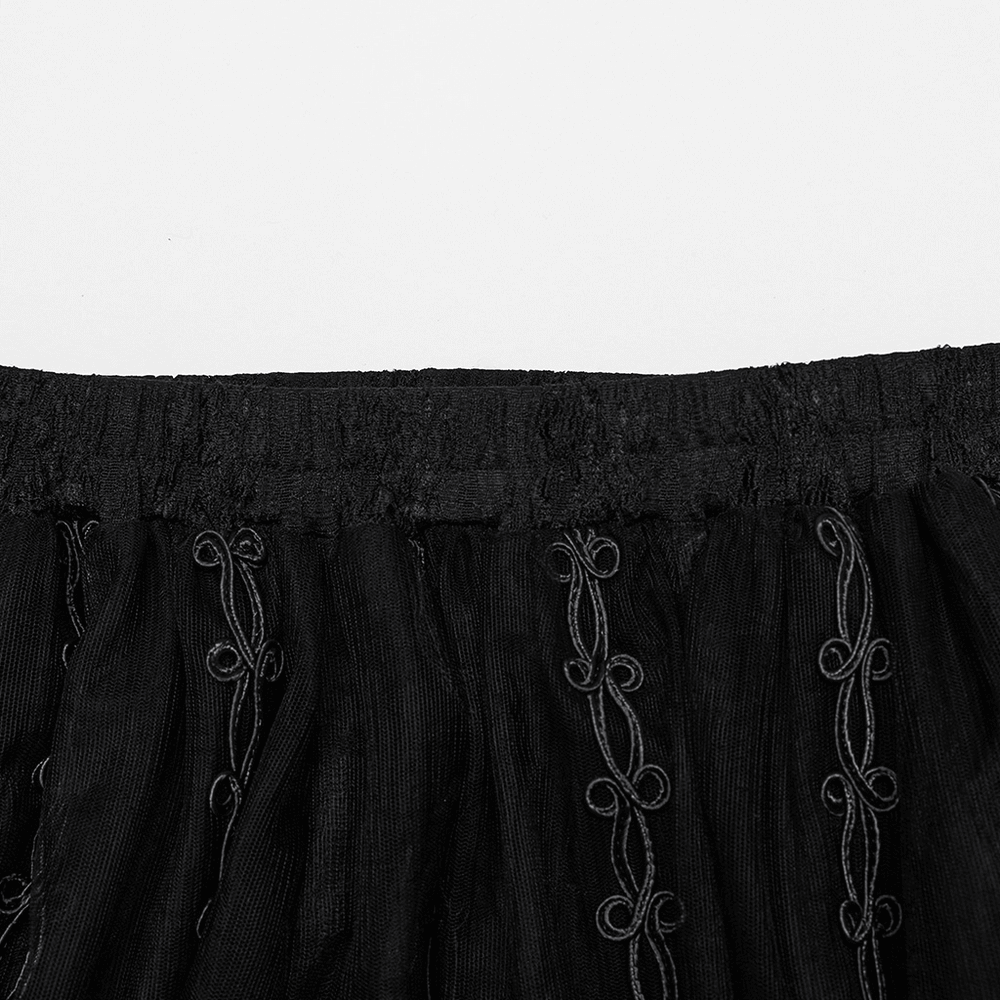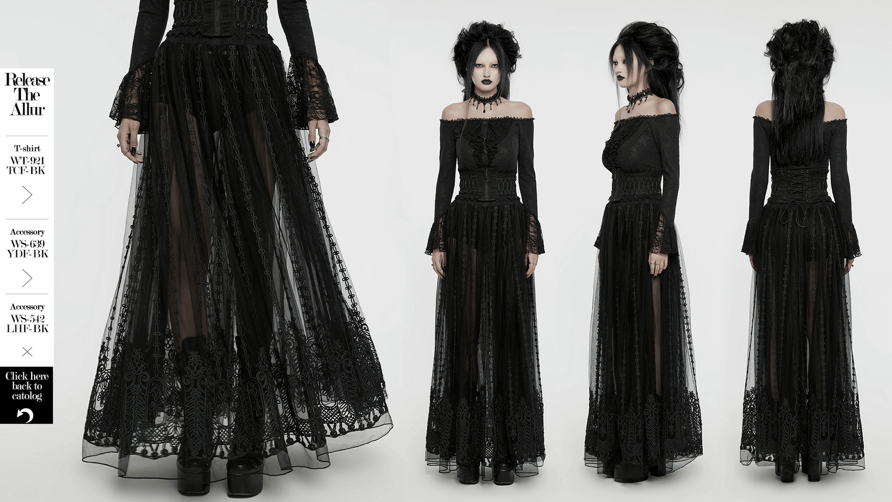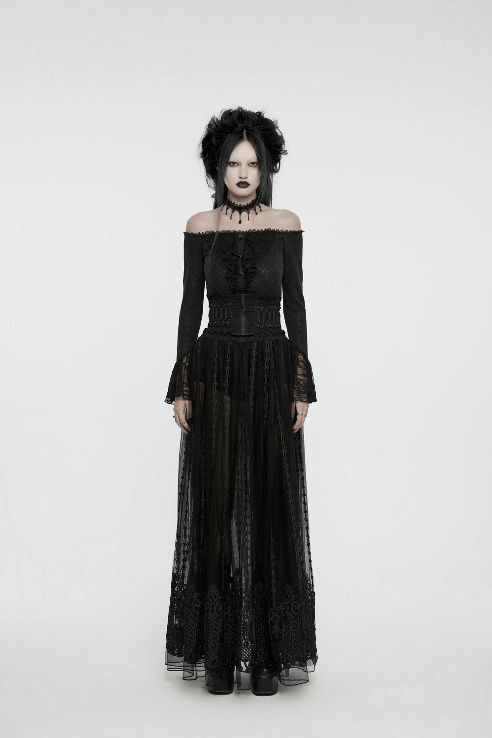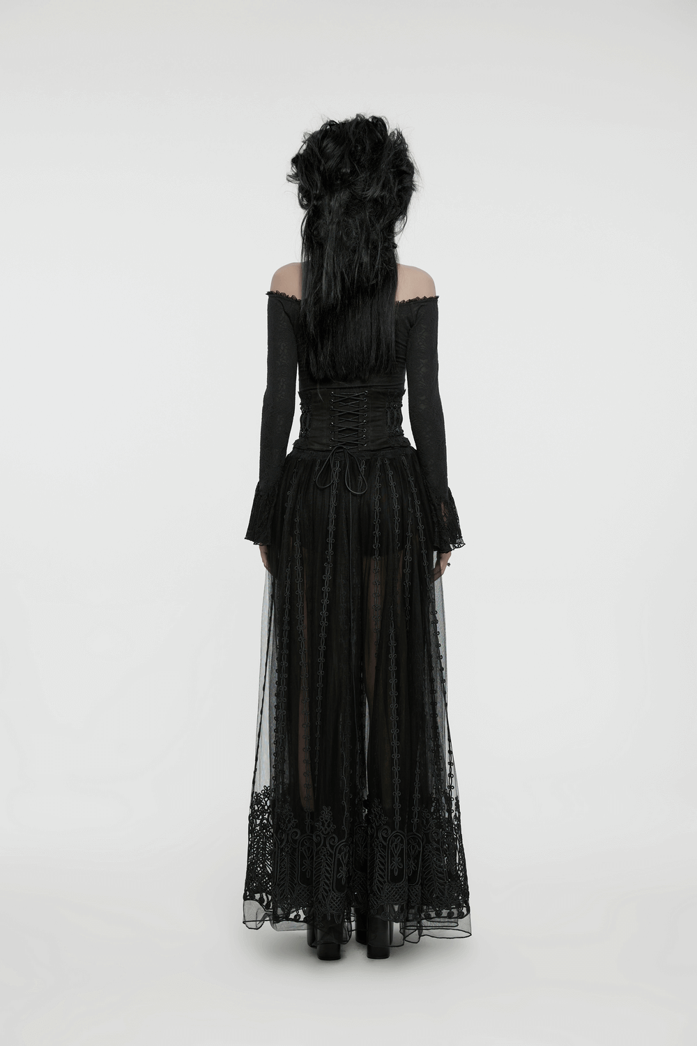 3D Embroidered Goth Skirt - Gothic Maxi Skirt with Sheer Mesh.