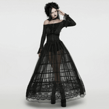 This gothic maxi skirt, made from delicate 3D floral mesh, weaves intricate floral designs like enchanting vines. The deep tones radiate elegance and intrigue, while the sheer mesh defines a graceful silhouette. Featuring a flexible elastic waistband, the voluminous draped skirt brings a dreamy gothic charm. Unleash your inner enigma with this classic piece, perfect for elevating any alternative wardrobe.