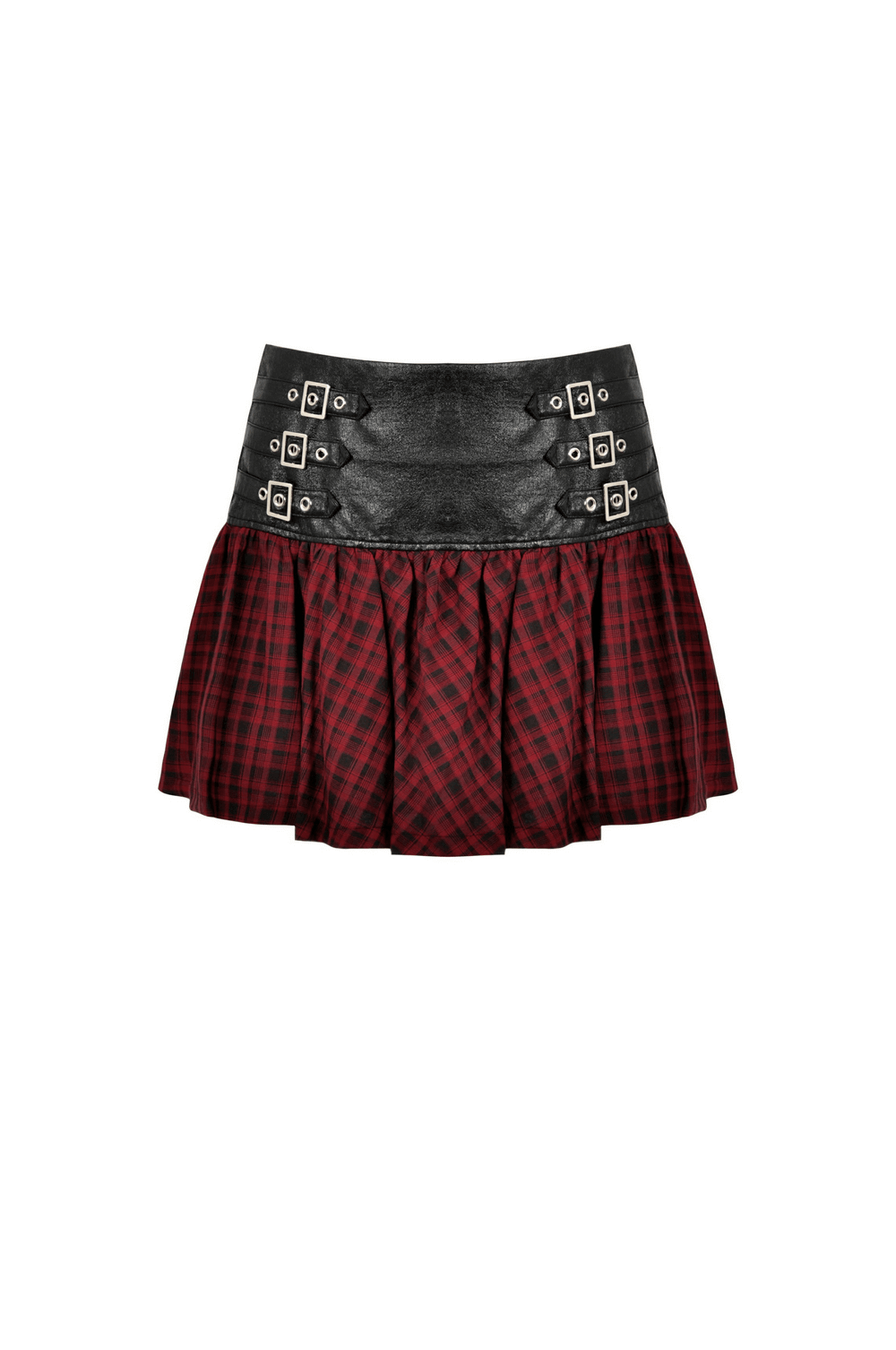 Gothic Mini Skirt in Red and Black Tartan with Belt Detail