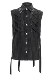 Punk Rock Dark Sleeveless Shirt with Lacing and Metal Rings.
