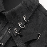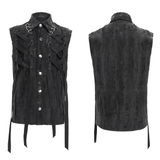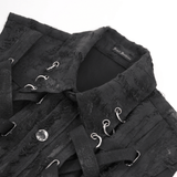Make a statement with this men's gothic punk sleeveless shirt, featuring textured fabric, striking lace-up details, and bold metal rings. The button-up front adds to its edgy appeal, while the rugged texture and adjustable lacing create a rebellious punk rock vibe. Ideal for concerts, streetwear, cosplay, and alternative fashion fans.