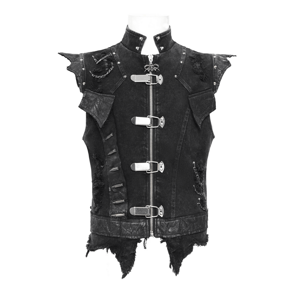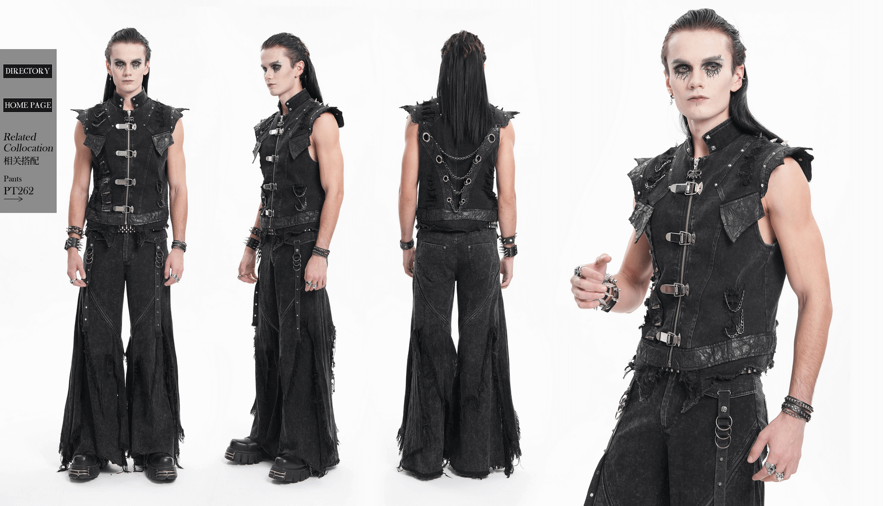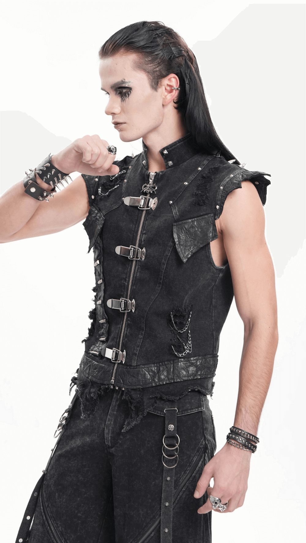 Gothic Punk Men's Vest with Buckles and Chain Accents