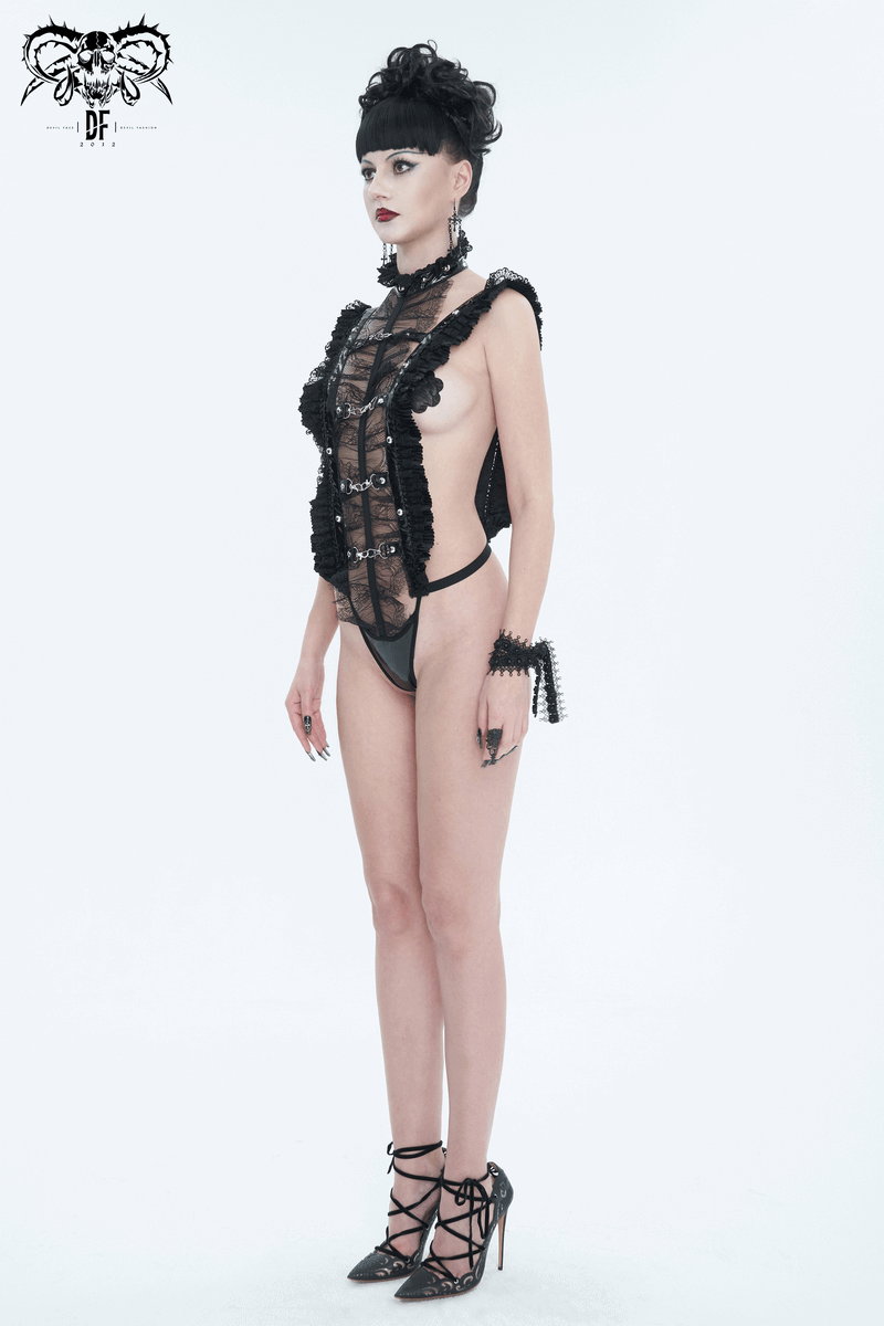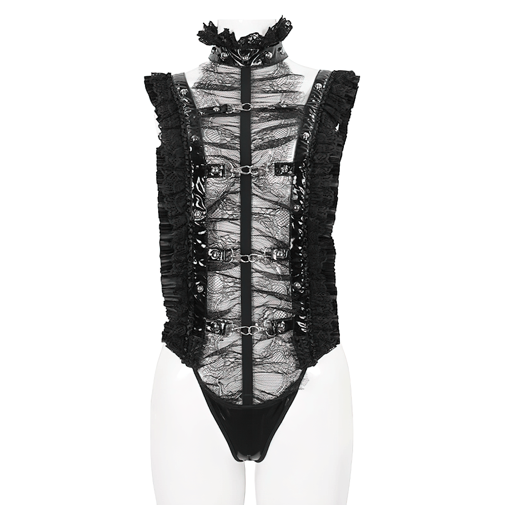 Gothic Ruffled Lace Lingerie Bodysuit With Stand Collar