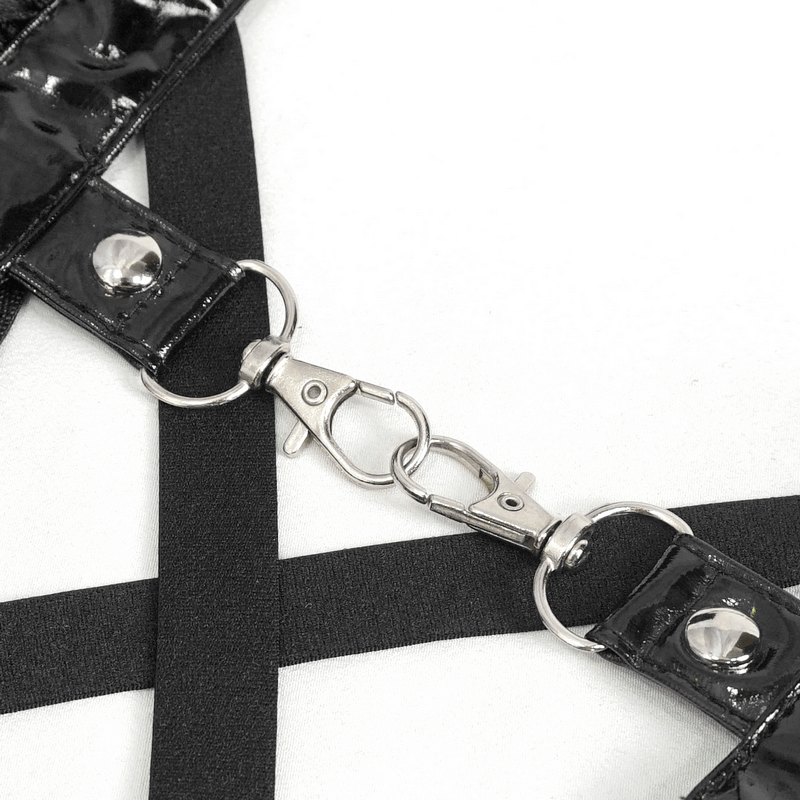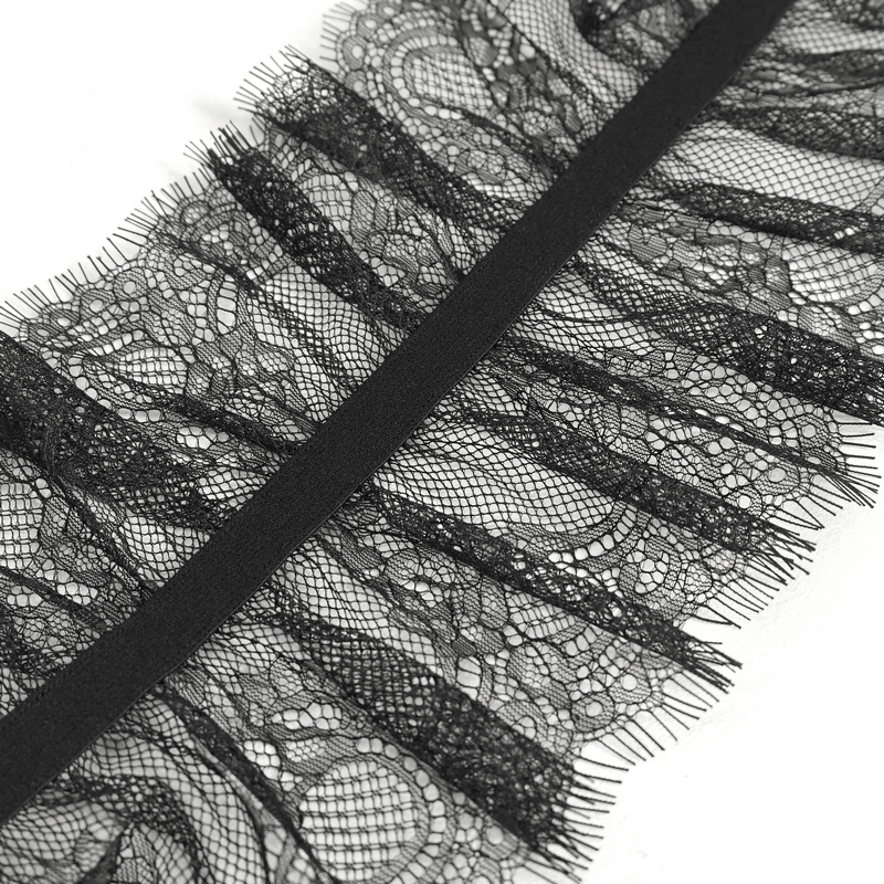 Indulge in allure with our gothic ruffled lace bodysuit. Seductive and elegant, it blends gothic charm with stretchable fabric for a flattering fit. With a sophisticated stand collar and feminine ruffles, it adds a unique touch to your alternative wardrobe. Step into the night with confidence in this enchanting black bodysuit, crafted for those who dare to stand out.