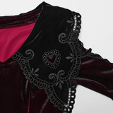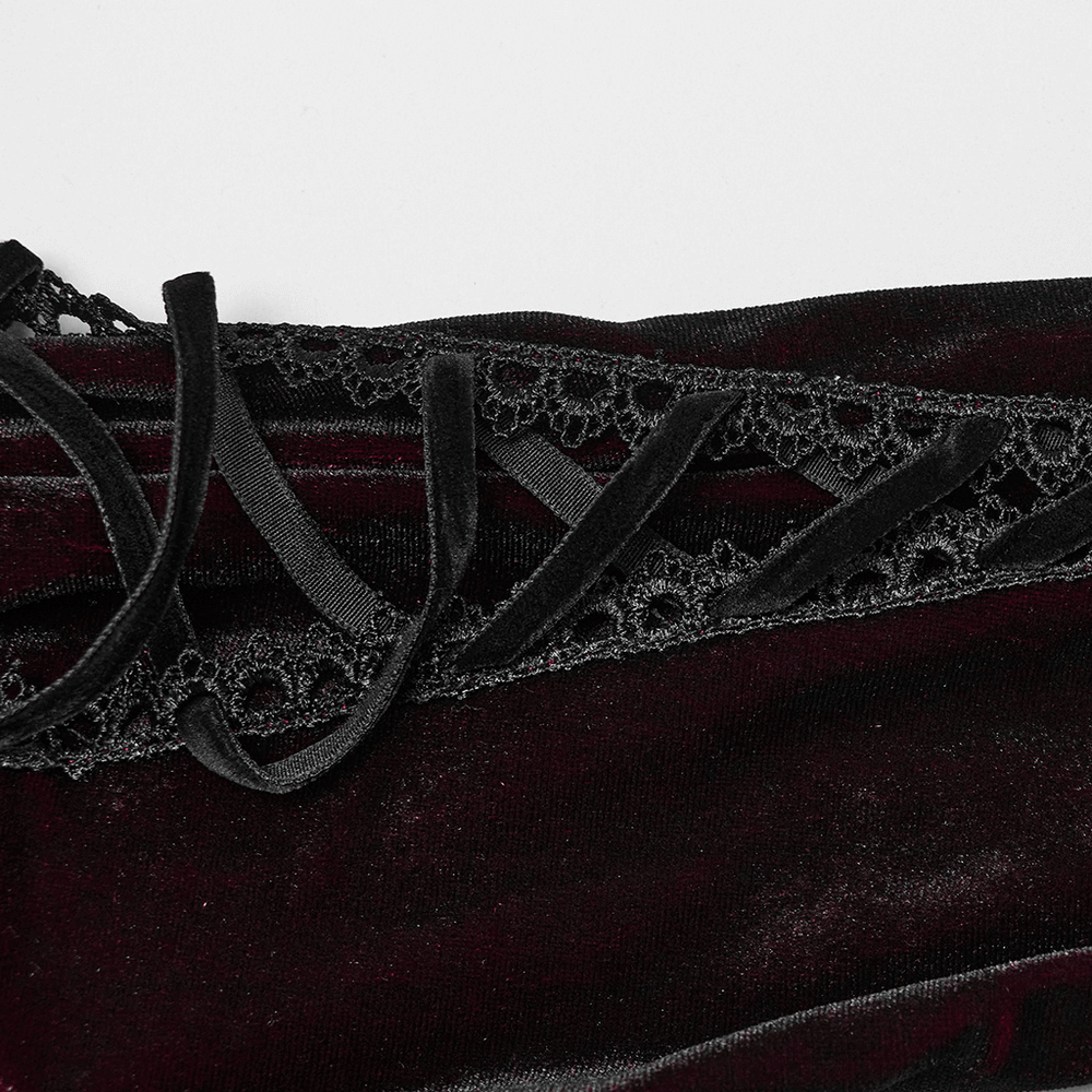 Velvet Gothic Dress with Cut-Out Collar and Delicate Lace Straps.