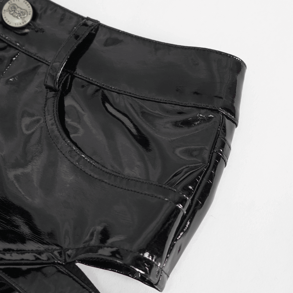 Women's Black Faux Leather Shorts Featuring Buckles.