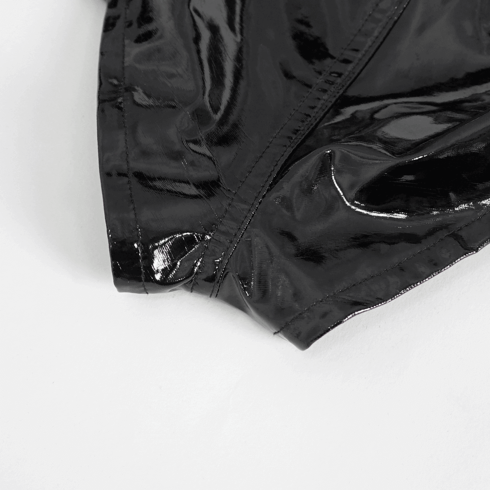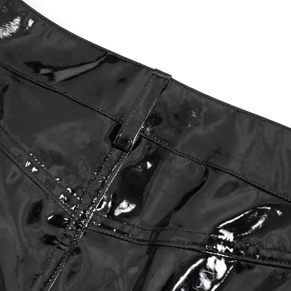 Rephrase this content text differently with the same character count: Take your stylish style to the next level with these high-waisted black faux leather shorts. Featuring statement buckle closures, these shorts offer a bold, edgy look that's sure to turn heads. The smooth faux leather material adds a touch of shine, while the high-waisted silhouette flatters your figure.