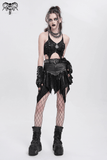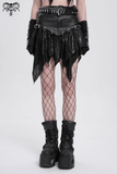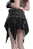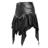 High-Waisted Mini Skirt with Edgy Rings and Uneven Hem