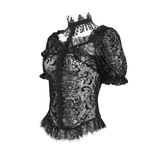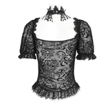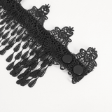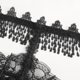 Unveil elegance with our black lace blouse. Detailed patterns and fringe details enhance your look. Short sleeves add versatility. Ideal for effortless day-to-night style.