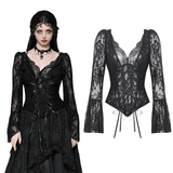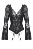 Lace Gothic Corset Top with Bell Sleeves and Tie Details