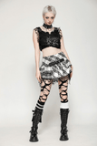 Ruffled Gothic Plaid Skirt with Uneven Hem