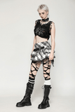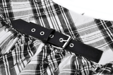 This layered plaid mini skirt showcases a striking gothic vibe with ruffled tiers and a bold black belt. The asymmetrical mesh trim adds a rebellious edge, perfect for alternative fashion fans. Designed with a flattering shortcut, this punk-inspired skirt pairs effortlessly with corsets, band tees, or combat boots. Great for casual outings, concerts, or cosplay events.