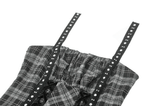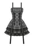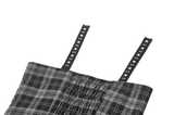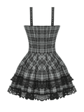 Plaid Gothic Mini Dress with Lace Edging and Harness Straps