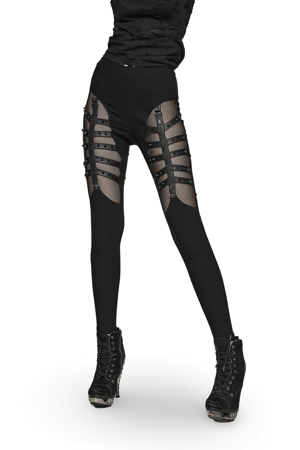 Edgy Punk Rock Studded Hollow-Out Leggings.