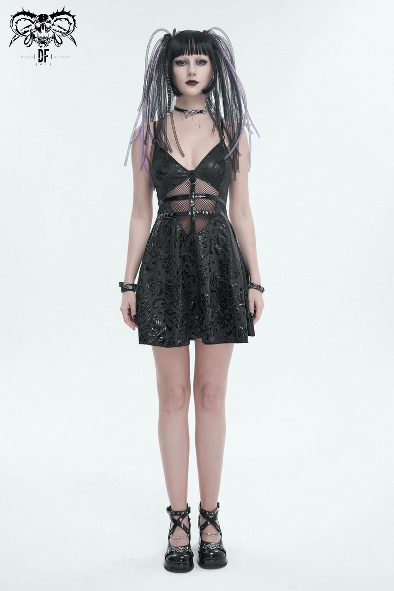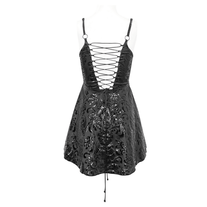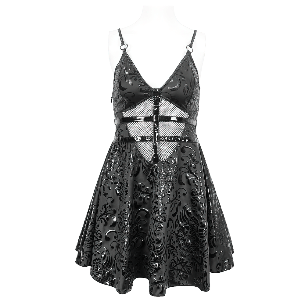 Infuse rebellion into your wardrobe with our punk V-neck short dress. Its striking hollow-out pattern and deep V-neck, paired with a lace-up back, push the boundaries of bold fashion. Flaunt your audacious spirit in this distinctive, unapologetic attire.